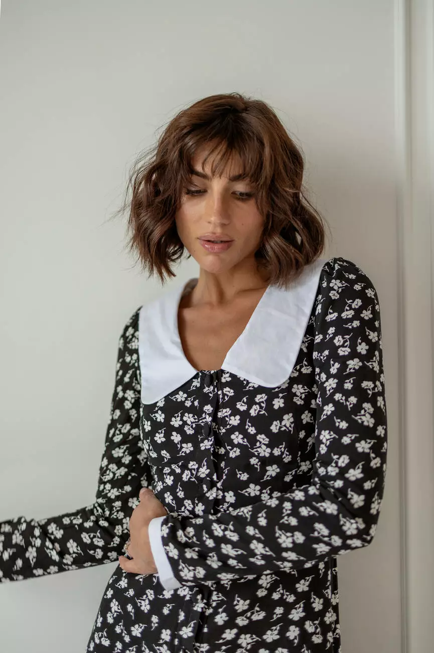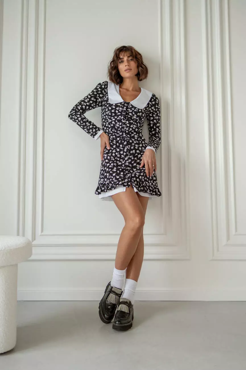 Чарівна жіноча сукня EMMA довжини міні у квітковий принт з білим комірцем чорного кольору
