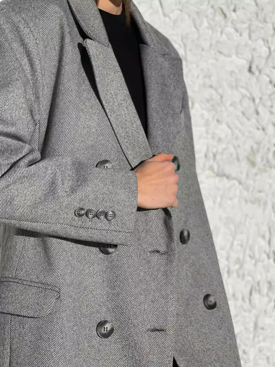 Демісезонне двобортне жіноче пальто BALENCIAGA з напівшерсті пальтова тканини на підкладці колір ялинка сірий