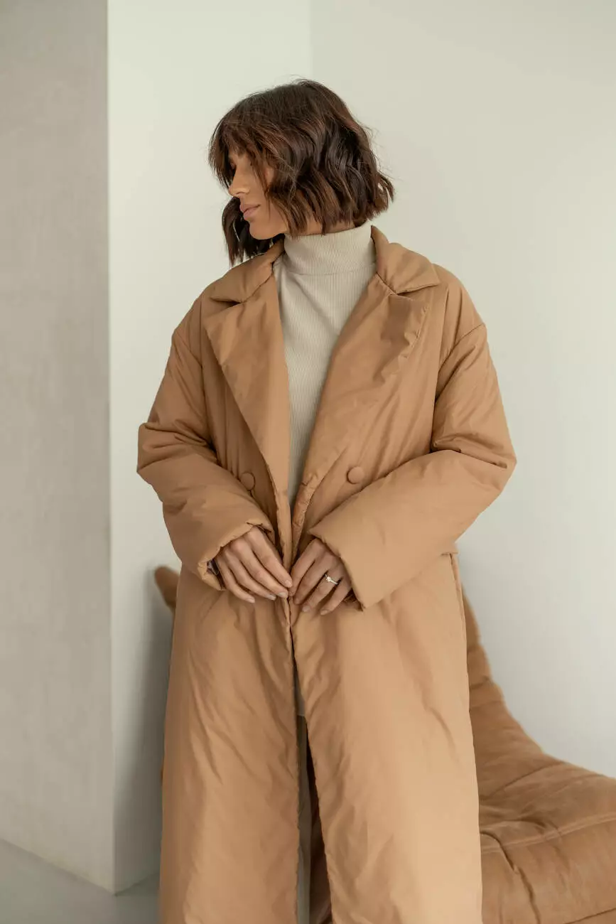 Відшивається на тонкому утеплювачі, який ефективно зігріває і при цьому надає трендового об'єму, пальто легке та тепле, практично невагоме.