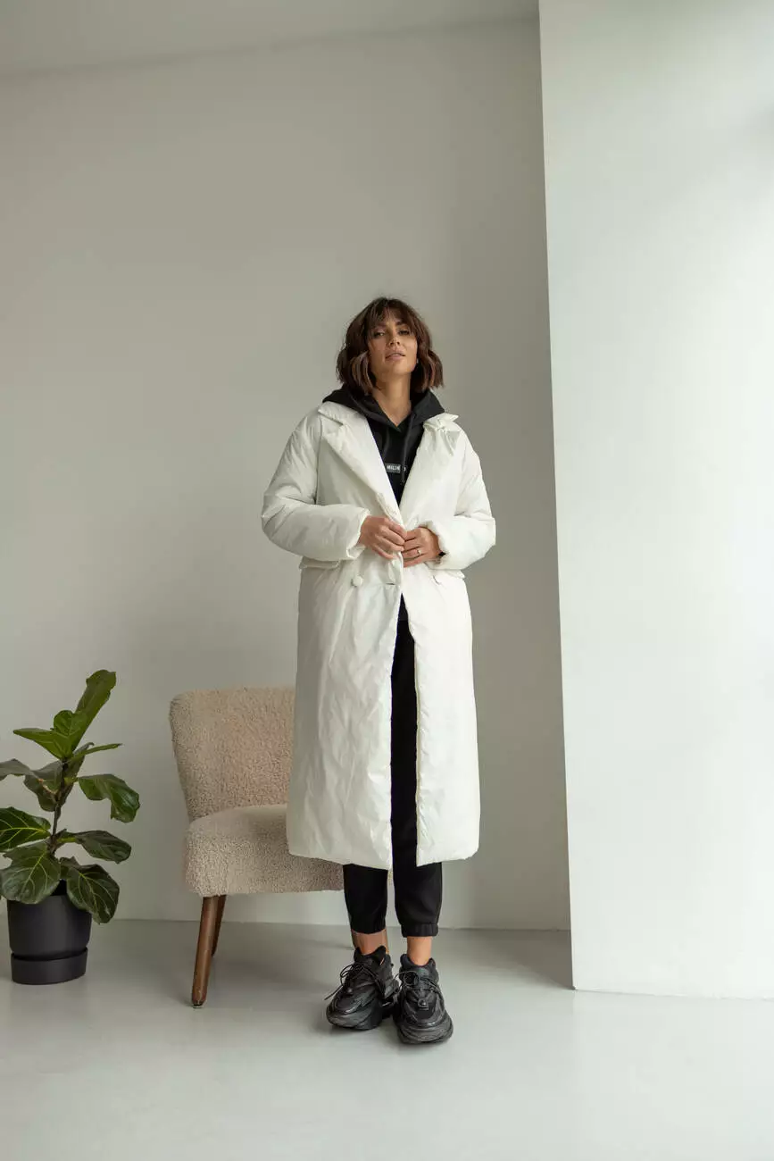 Демісезонне двобортне жіноче пальто MONRO з плащової тканини наповнювач силікон 80 молочного кольору