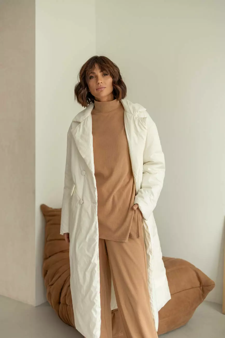 Відшивається на тонкому утеплювачі, який ефективно зігріває і при цьому надає трендового об'єму, пальто легке та тепле, практично невагоме.