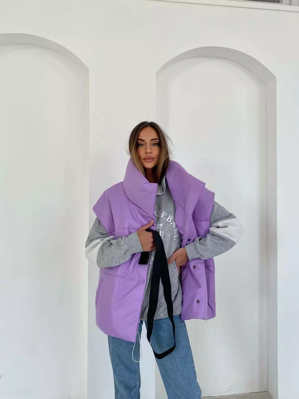 Демісезонний трендовий жилет Desing з екошкіри утеплювач силікон 200 лавандового кольору