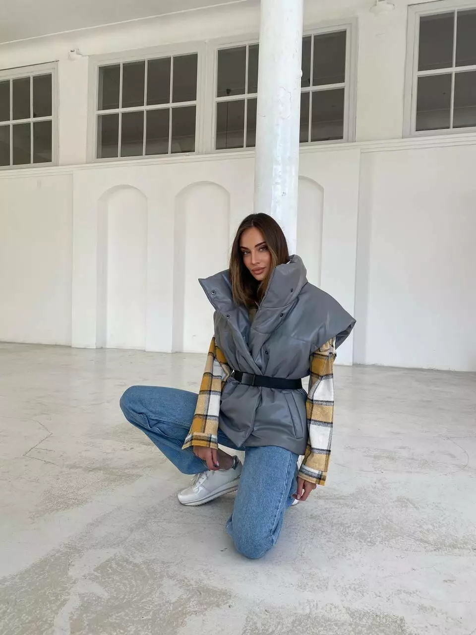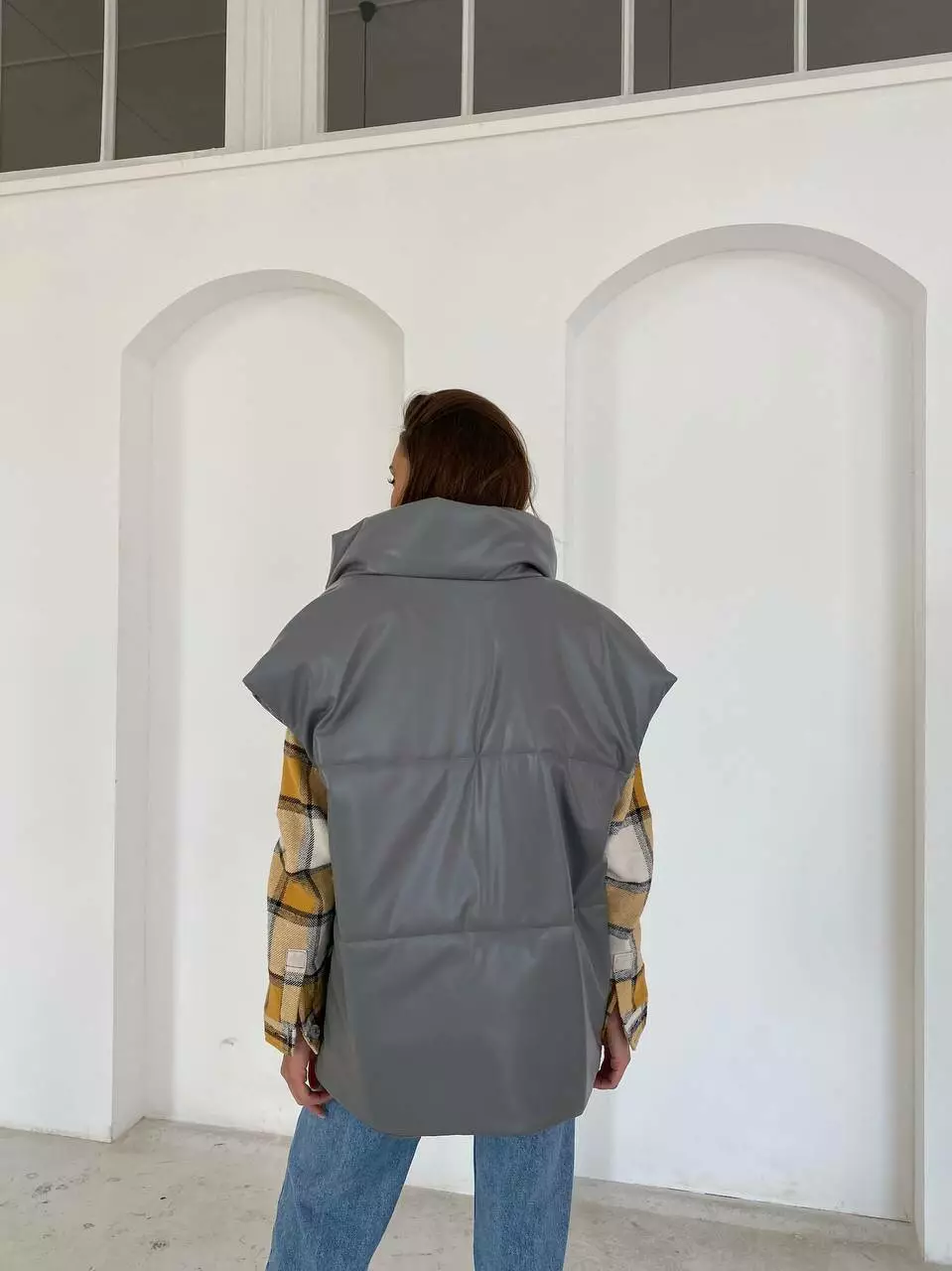 Демісезонний трендовий жилет Desing з екошкіри утеплювач силікон 200 сірого кольору