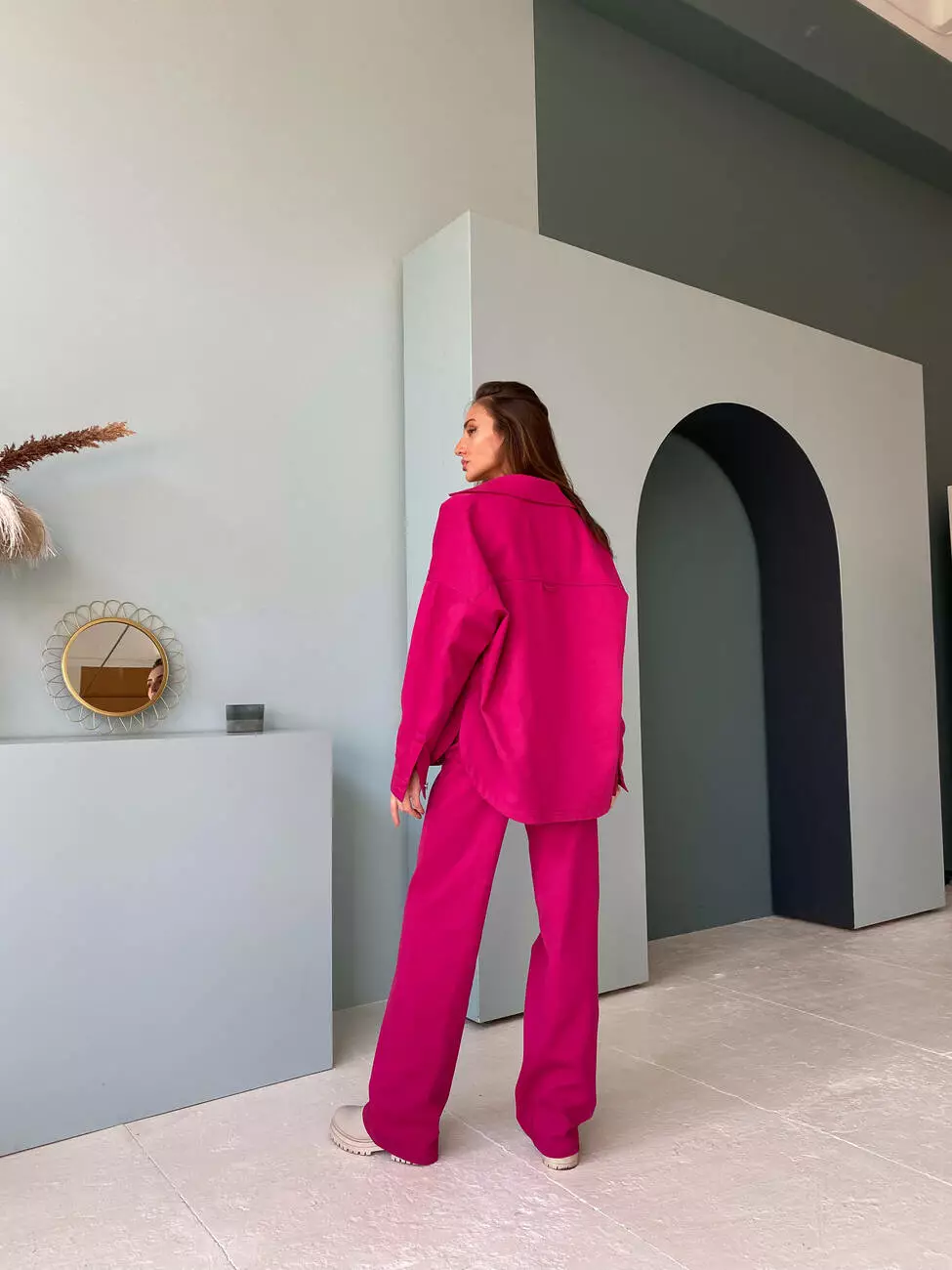 Джинсовий мега зручний костюм OLIMP малинового кольору