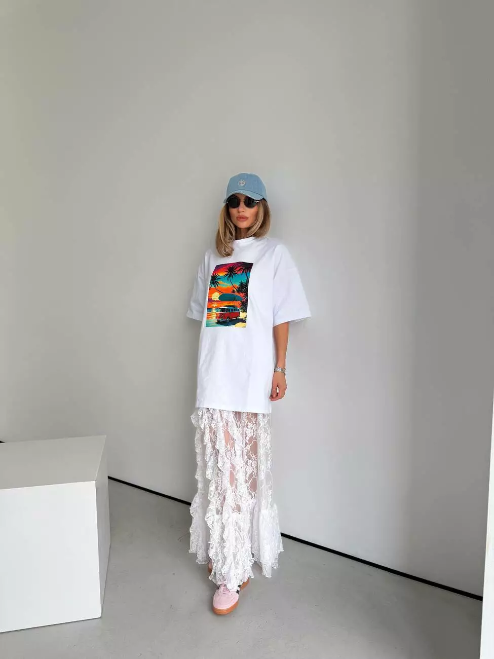 Широка футболка формат “over size” зі стильним принтом.
