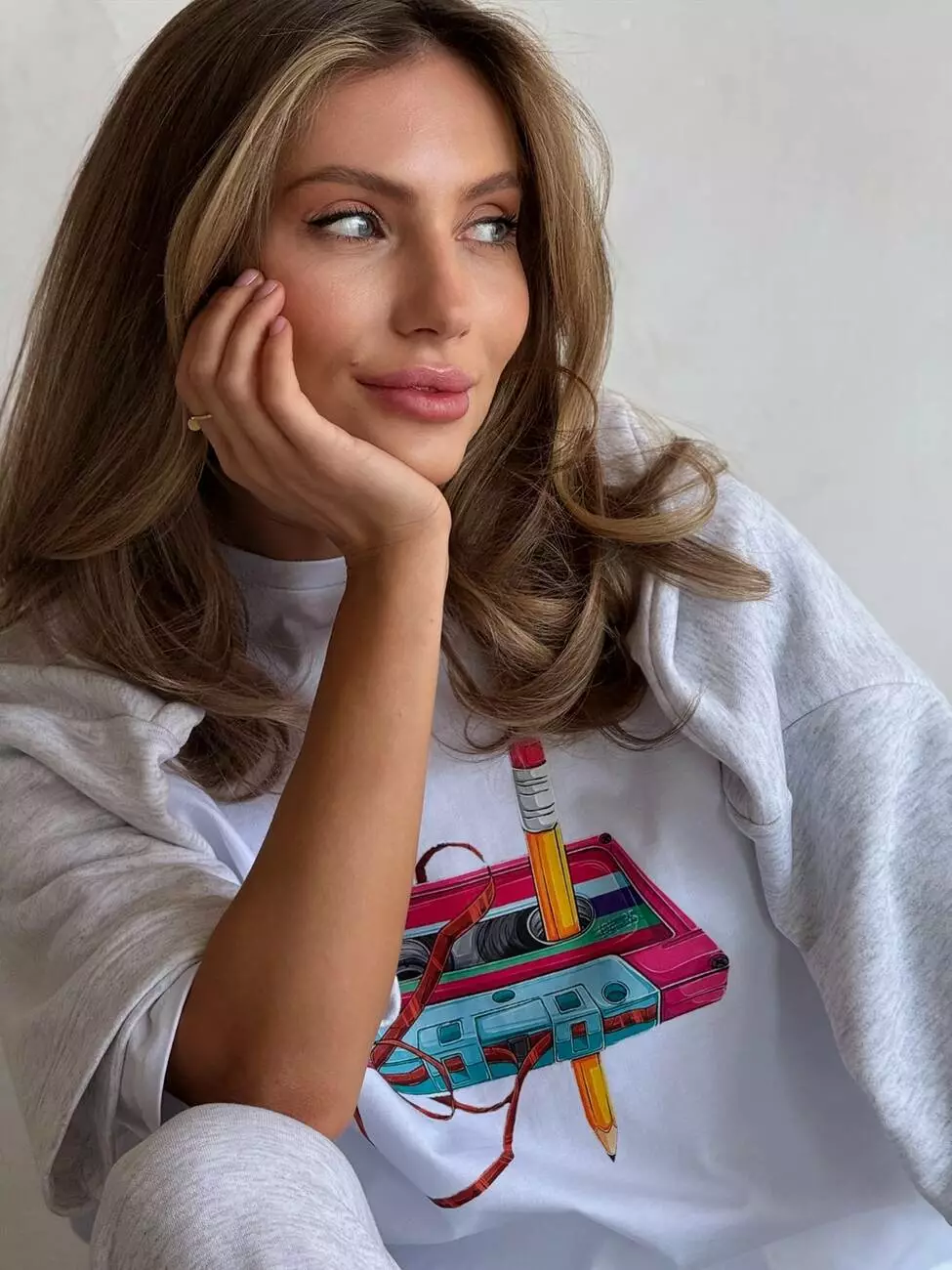 Широка футболка формат “over size” зі стильним принтом у вигляді касети.