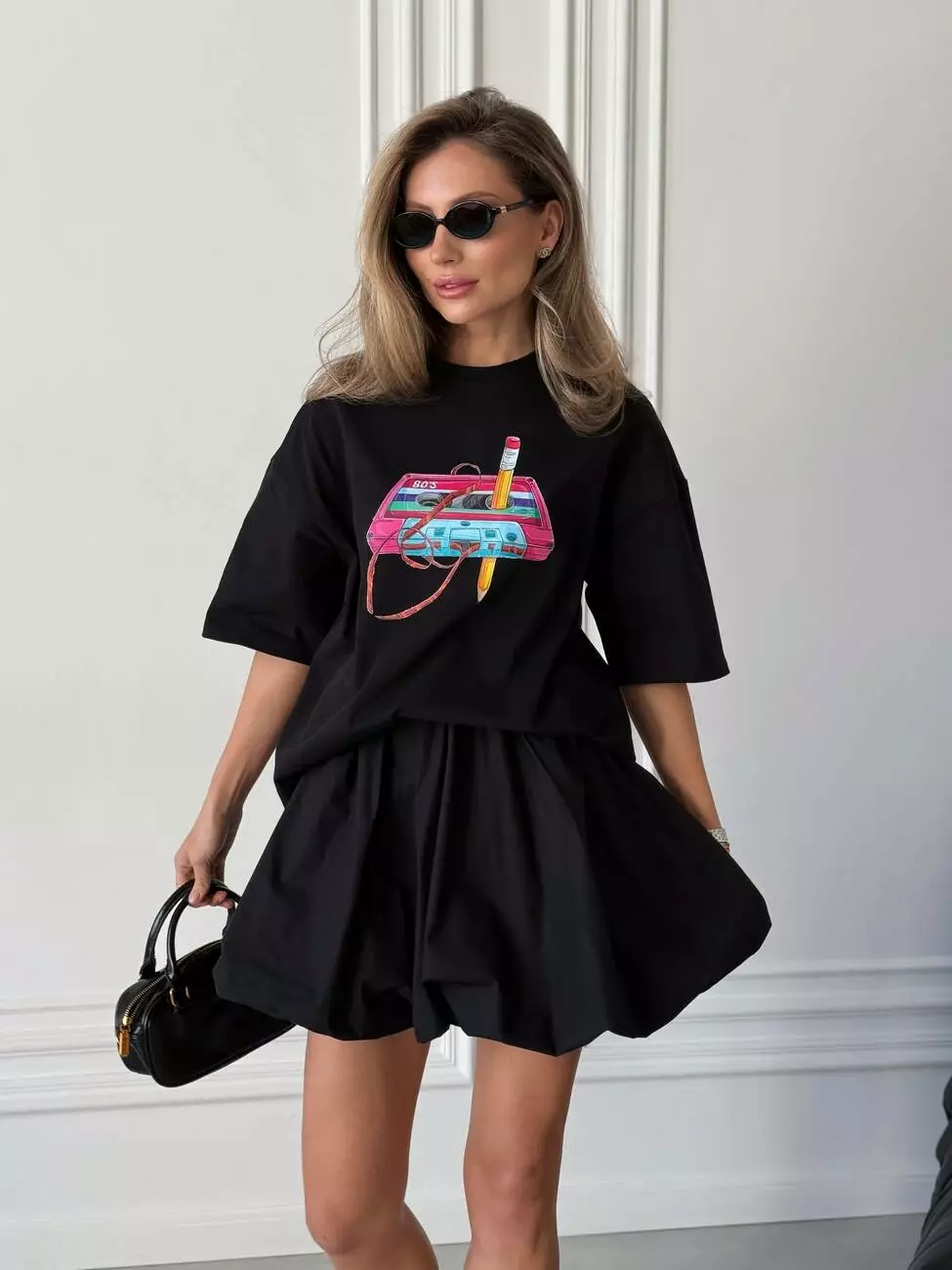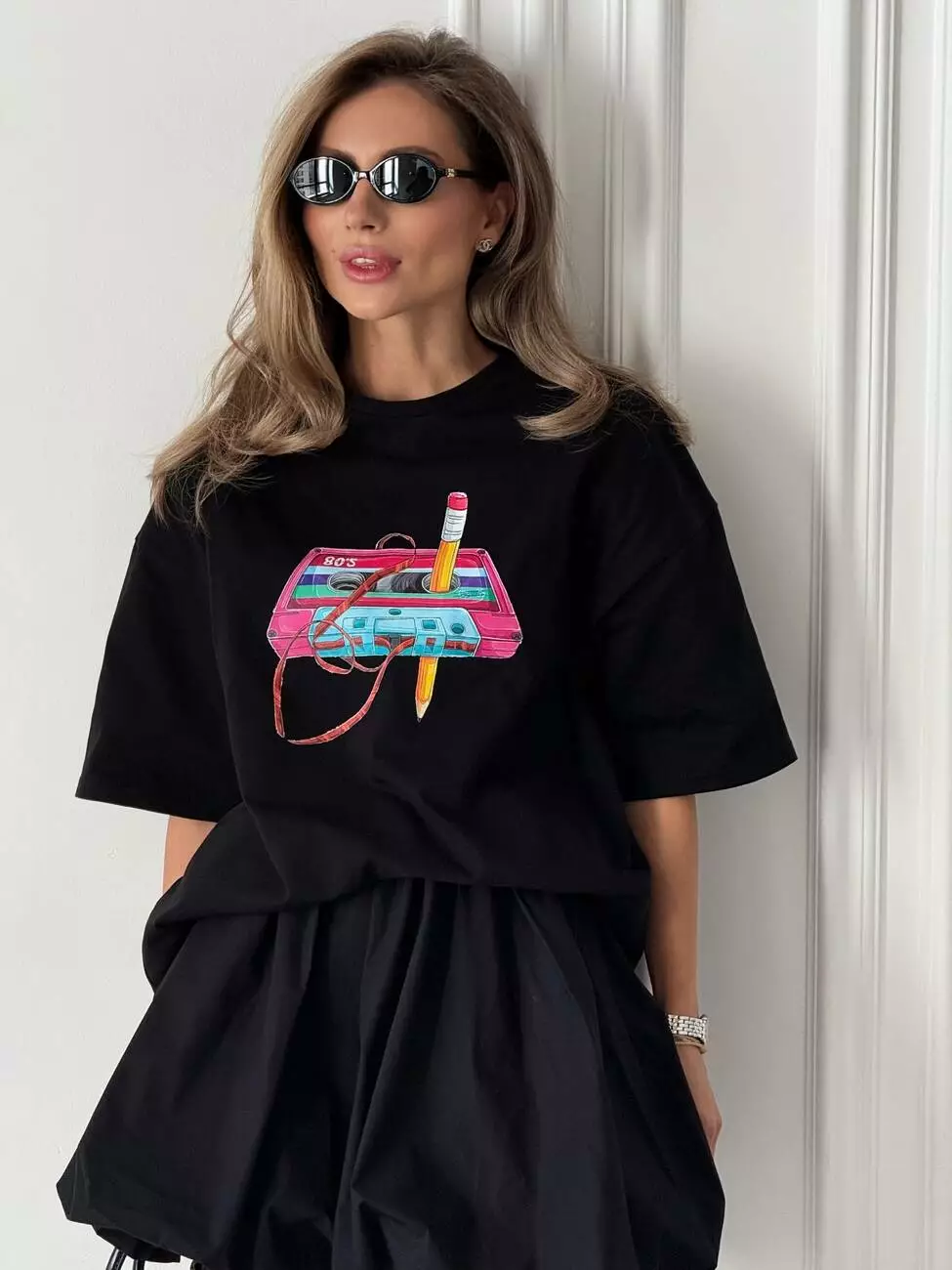 Широка футболка формат “over size” зі стильним принтом у вигляді касети.