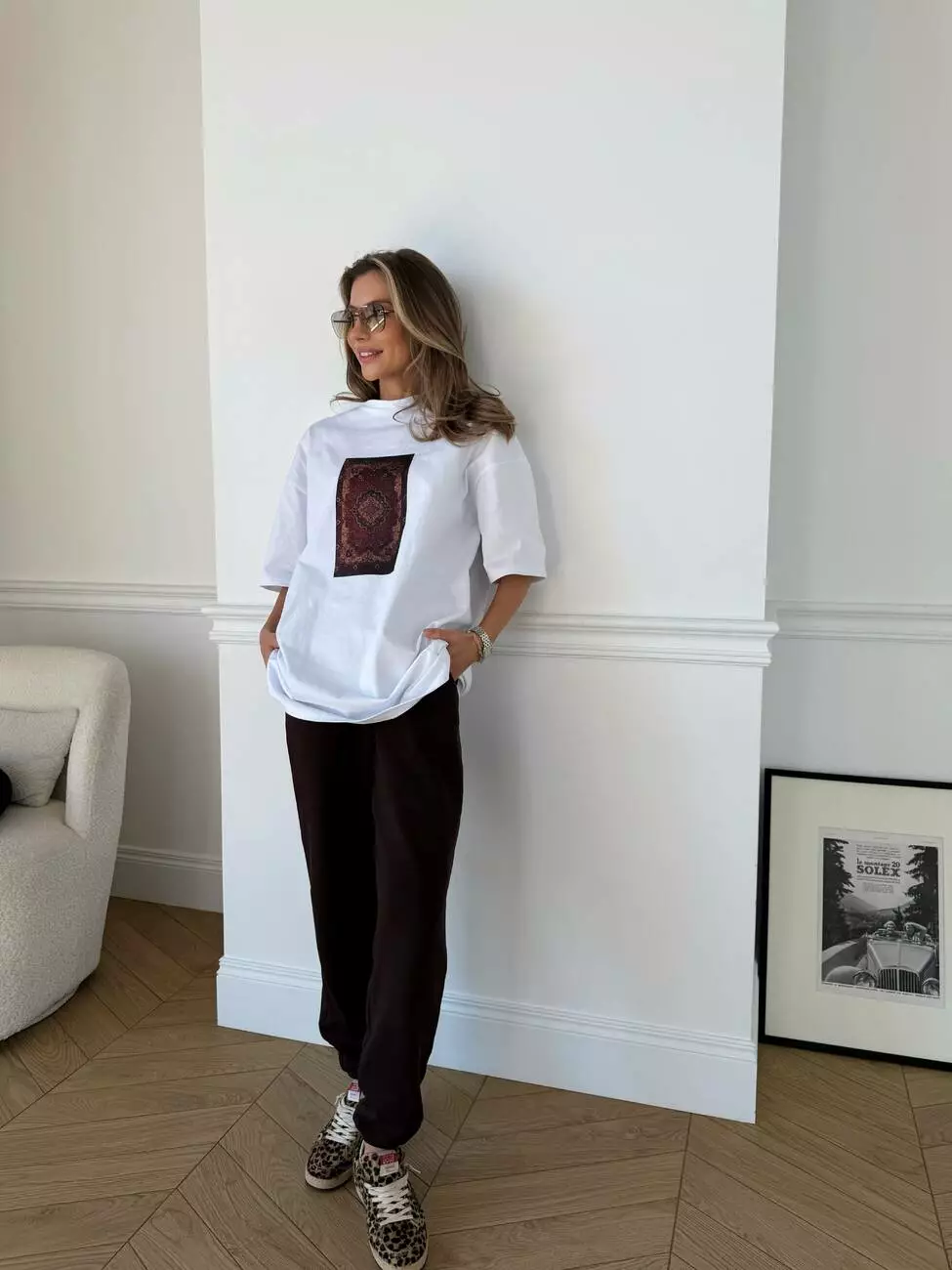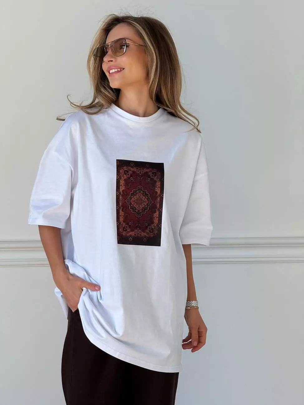 Широка футболка формат “over size” зі стильним принтом у вигляді килима.