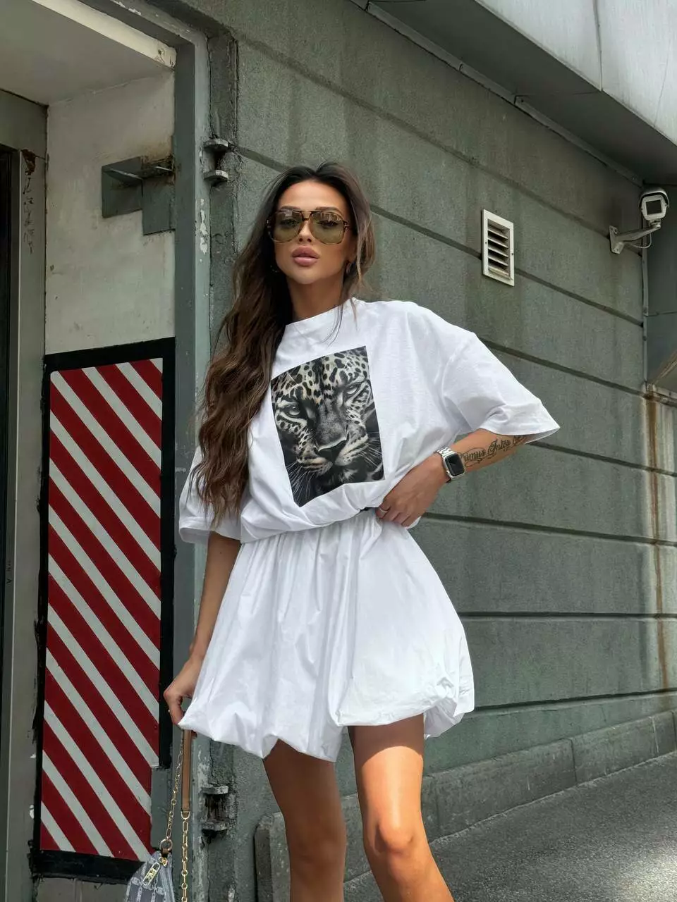 Широка футболка формат “over size” зі стильним анімалістичним принтом. Тканина : 100% бавовна ( щільність 250)