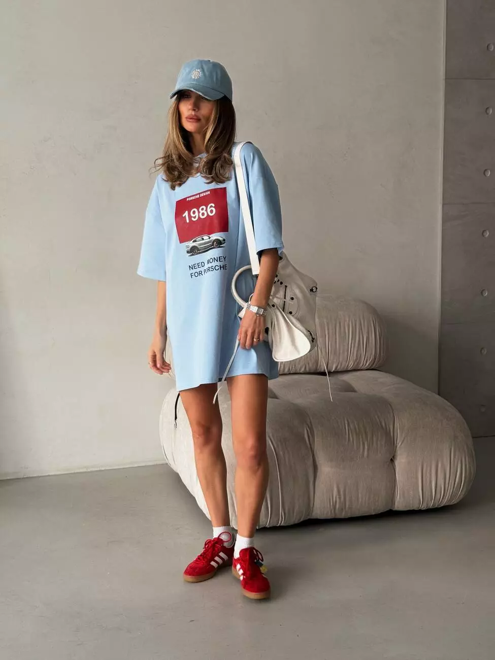 Широка футболка формат “over size” зі стильним принтом у вигляді порше.