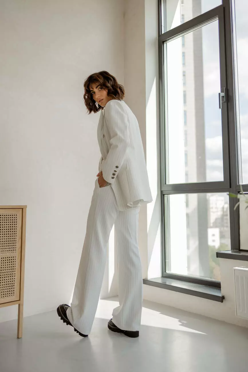 Класичний брючний костюм RICCO з костюмної тканини колір білий в смугу