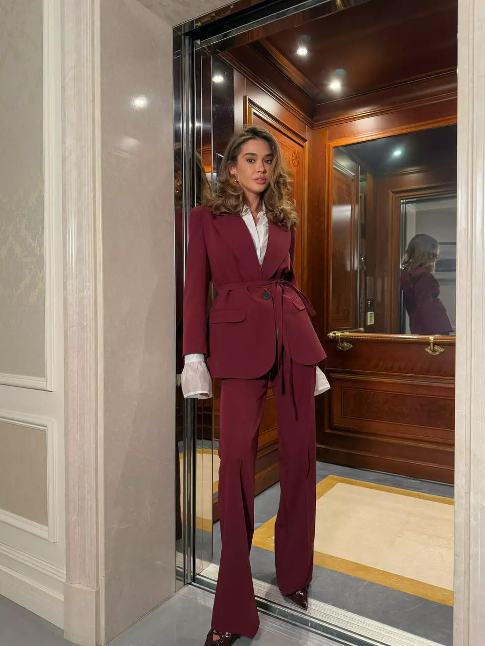 Стильний класичний костюм, під пояс Піджак з чоловічого плеча, прямого крою Брюки прямого крою, на трохи заниженій посадці. Пояс шнурок в комплекті. Тканина : преміальна костюмка