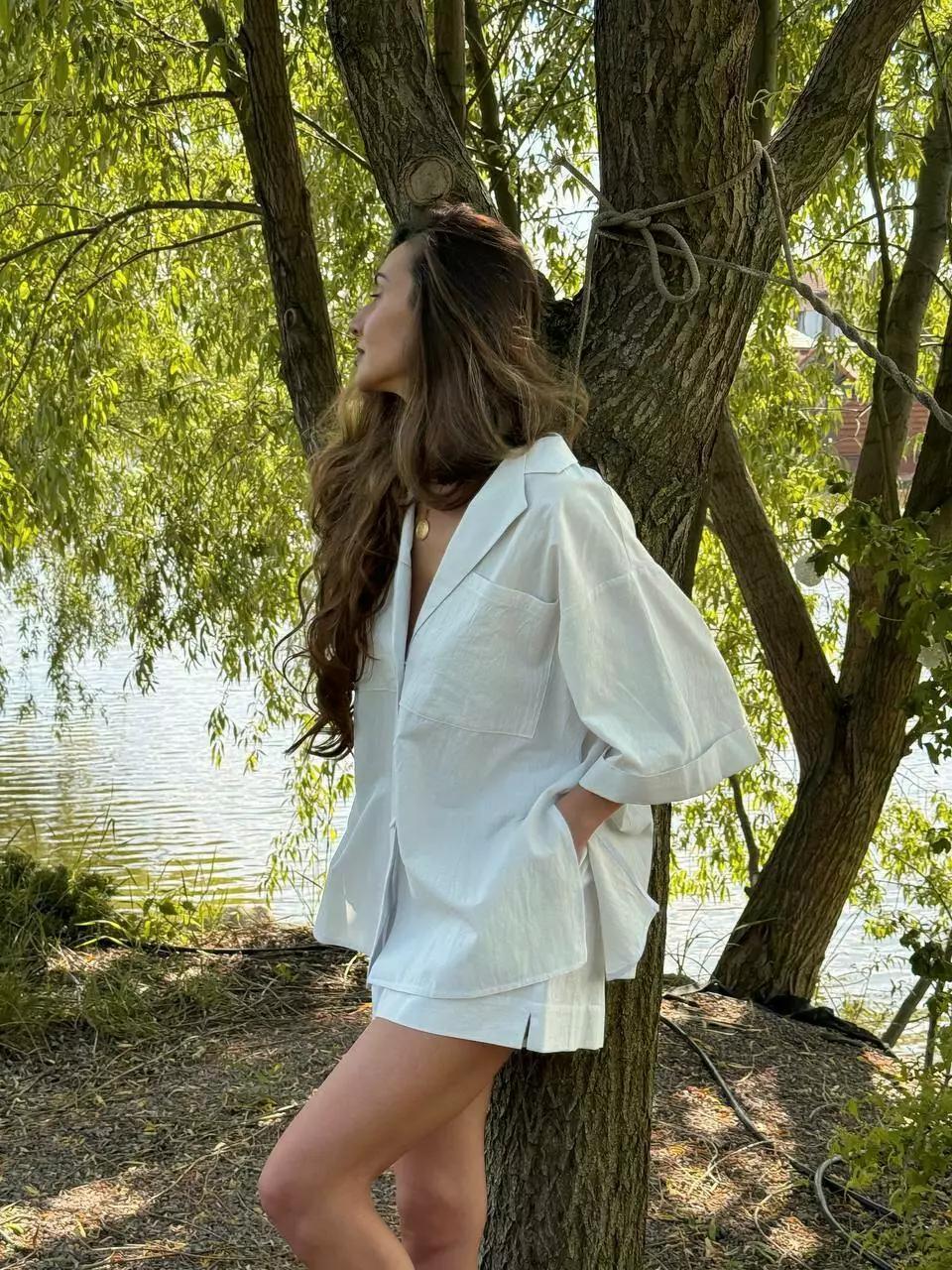 Літній комфортний костюм, в поєднанні широкої сорочки в стилі піджак та прямих шорт.