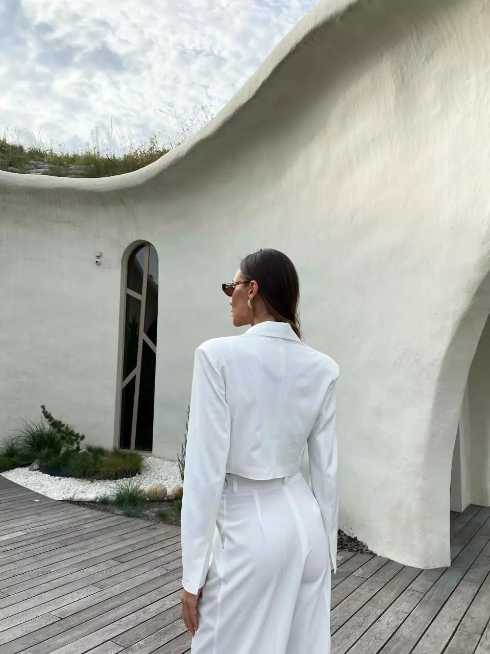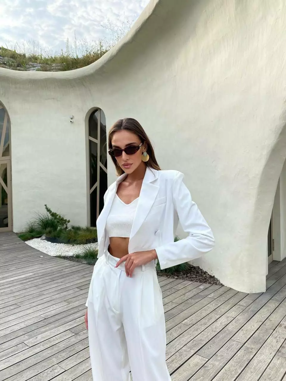У люксовому виконанні Кроп-жакет двобортний та штани палаццо