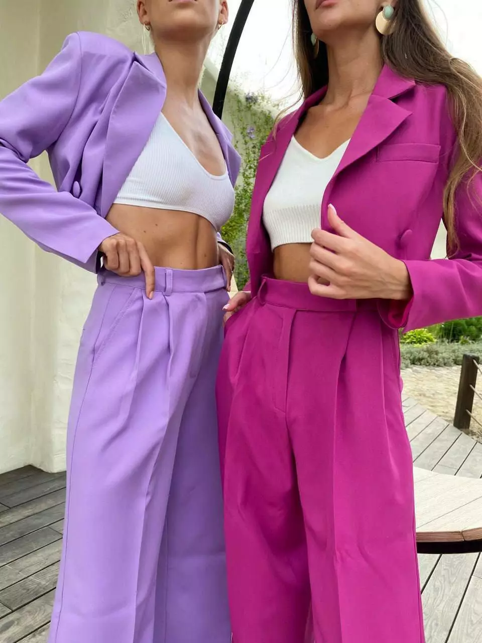 У люксовому виконанні Кроп-жакет двобортний та штани палаццо