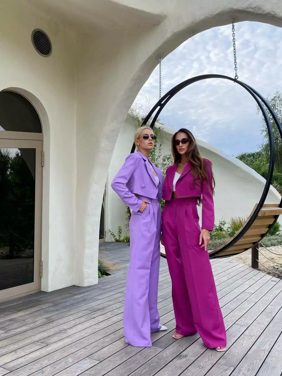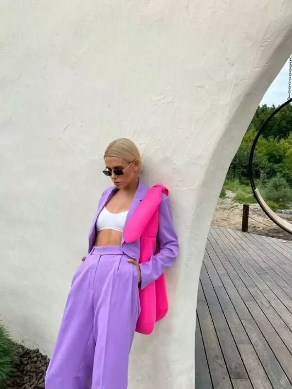 У люксовому виконанні Кроп-жакет двобортний та штани палаццо