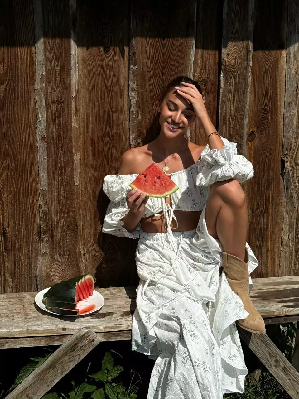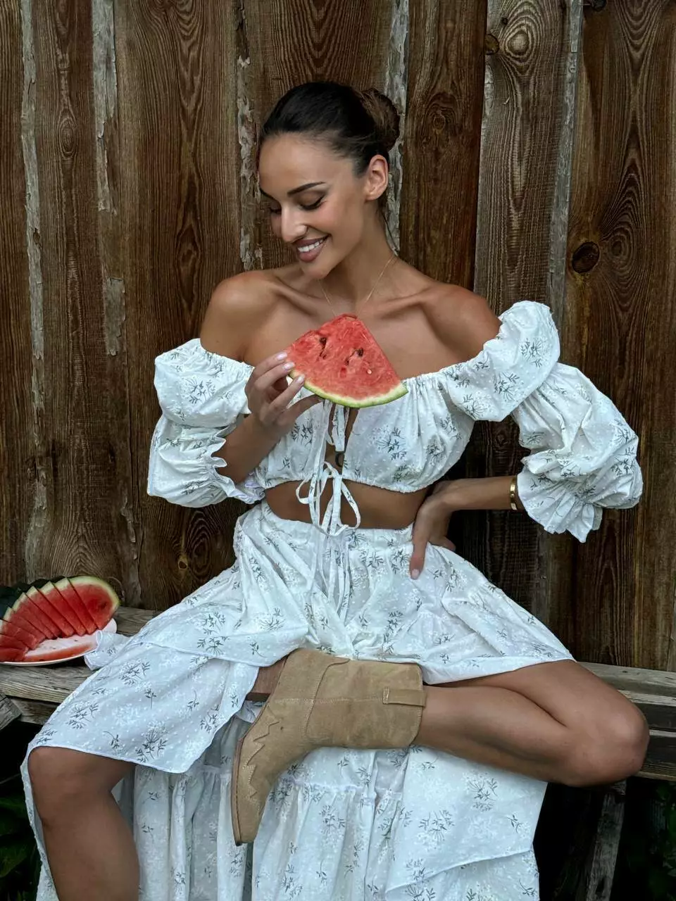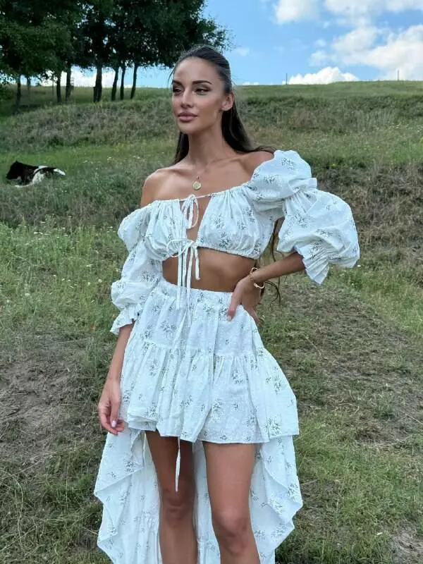 Ліф-топ та спідниця з коротким передом та максі позаду Універсального розміру, топ регулюється завʼязками Талія спідниці на гумці та теж на регуляторі