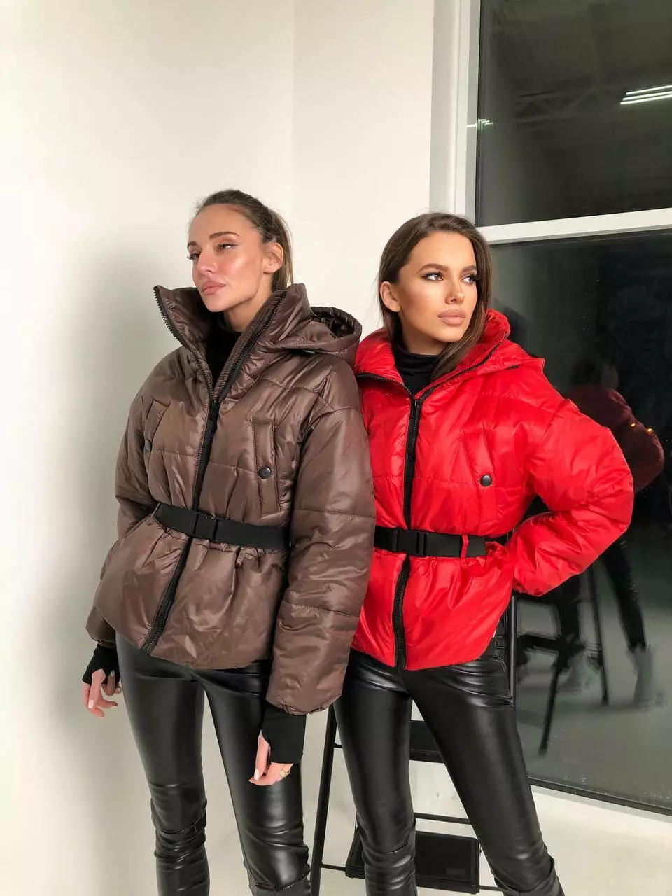 Коротка куртка під пояс-гумку. Знімний капюшон, 2 кишені на кнопках Тканина: плащівка