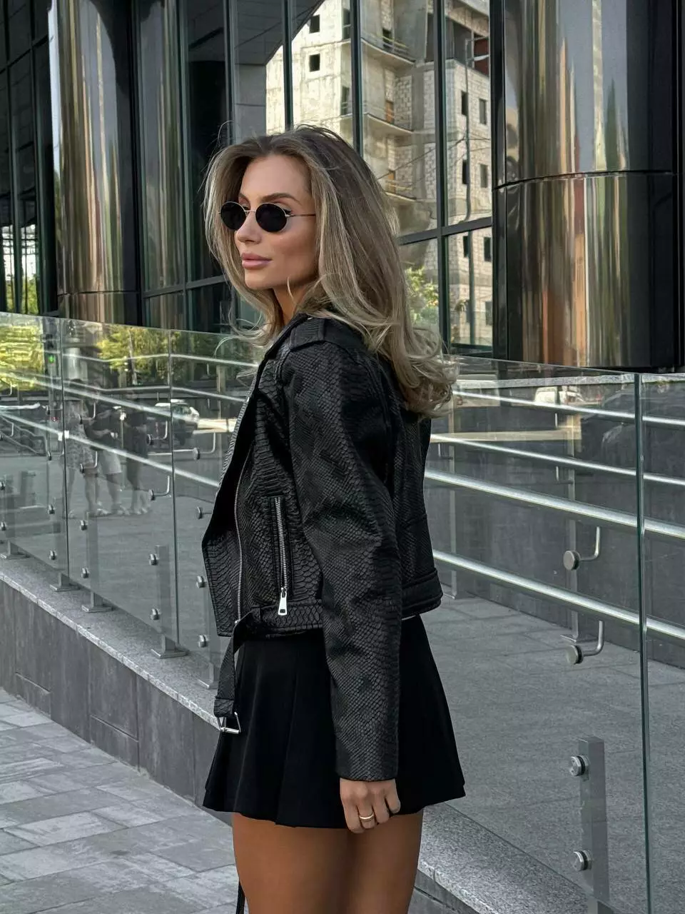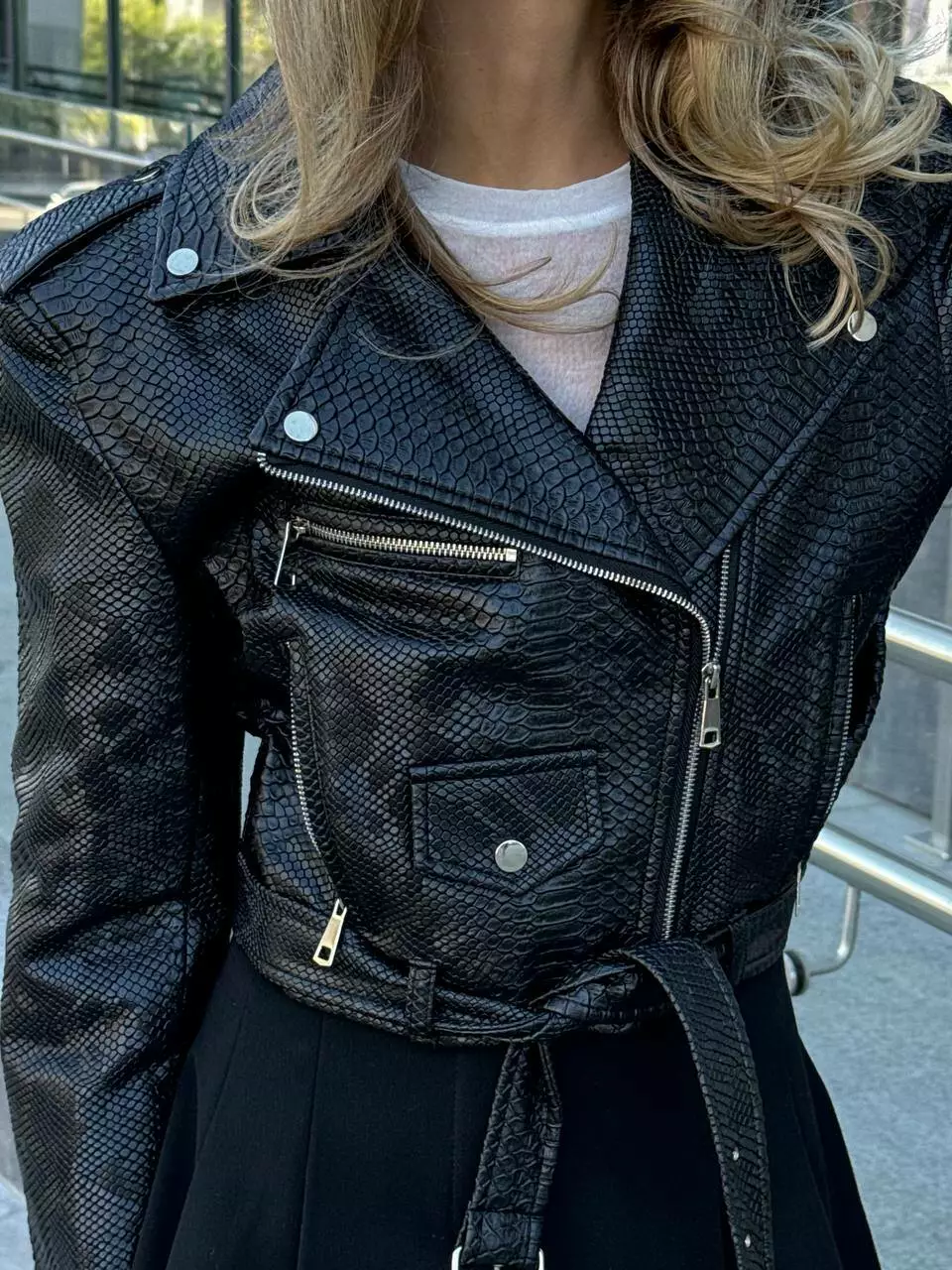 Куртка -косуха з ОБʼЄМНИМИ ПЛЕЧИМА колір пітон чорний