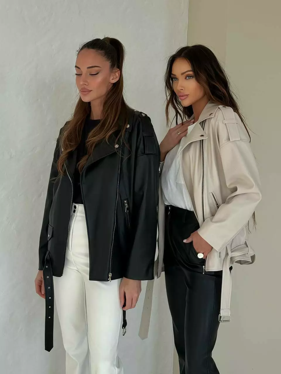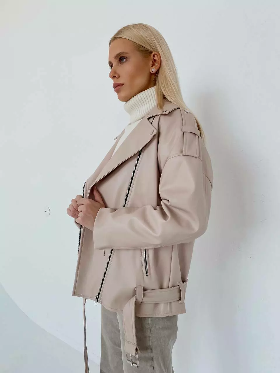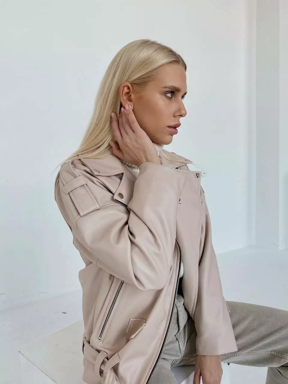 Оверсайз подовжена куртка, виконана з люксової екошкіри та дуже якісного пошиття Металева фурнітура, всі робочі кишені, пояс в колір виробу йде у комплекті