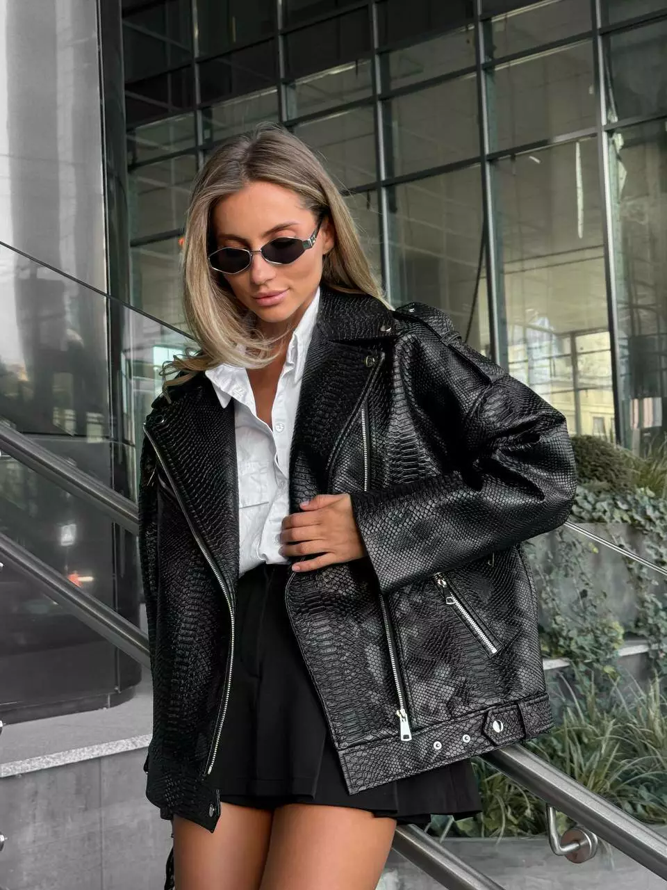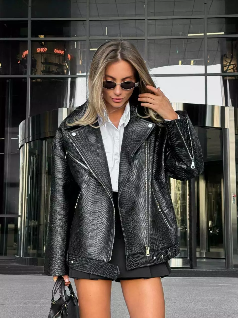 Стильна оверсайз куртка, матова, з низом, що регулюється (без ременя)! Легка та стильна Тканина: еко-шкіра Розмір: 42 - 46