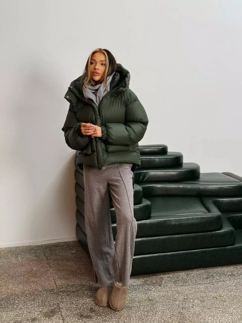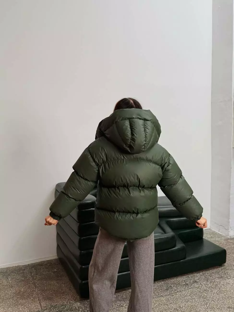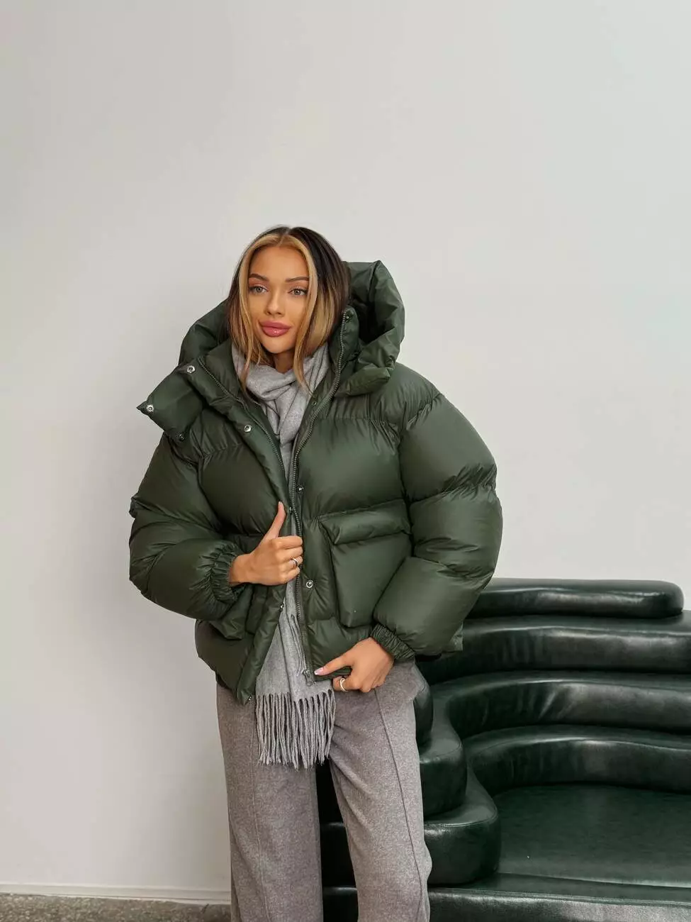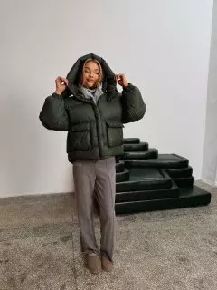 Зимовий укорочений пуховик, виконаний з плащівки на мембрані, що є непродувною і водонепроникаючою. Капюшон знімається