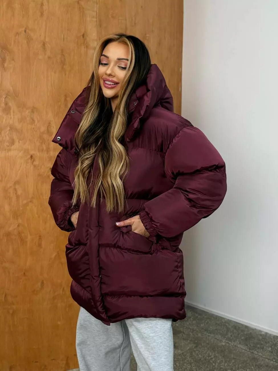 Зимовий подовжений пуховик, виконаний з плащівки на мембрані, що є непродувною і водонепроникаючою. Капюшон знімається