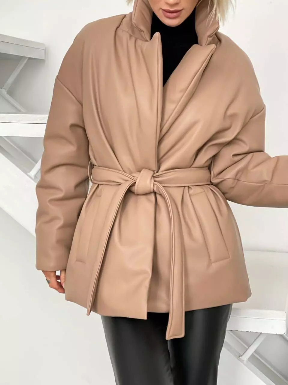 Супер сучасний тренд - тепла куртка ЖАКЕТ з гладкої, якісної екошкіри на силіконі У моделі передбачений знімний пояс, який надає акценту на талію, підкреслюючи жіночність та грацію