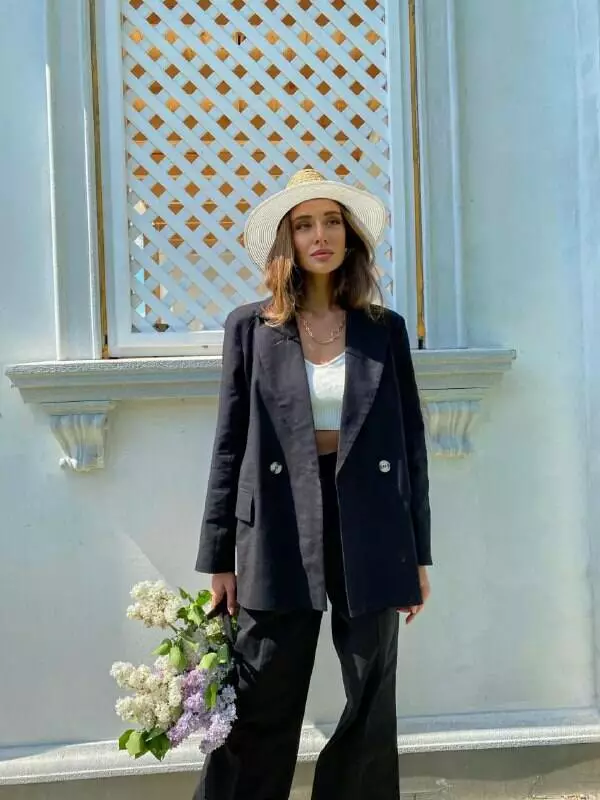 Трендовий піджак «з чоловічого плеча», з карманами, бавовняна підкладка, шліць по спинці.