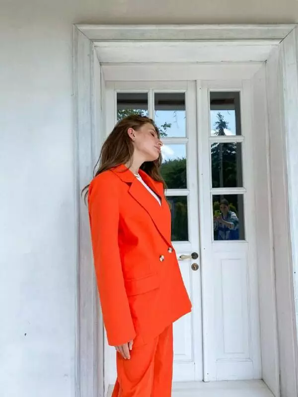 Трендовий піджак «з чоловічого плеча», з карманами, бавовняна підкладка, шліць по спинці.