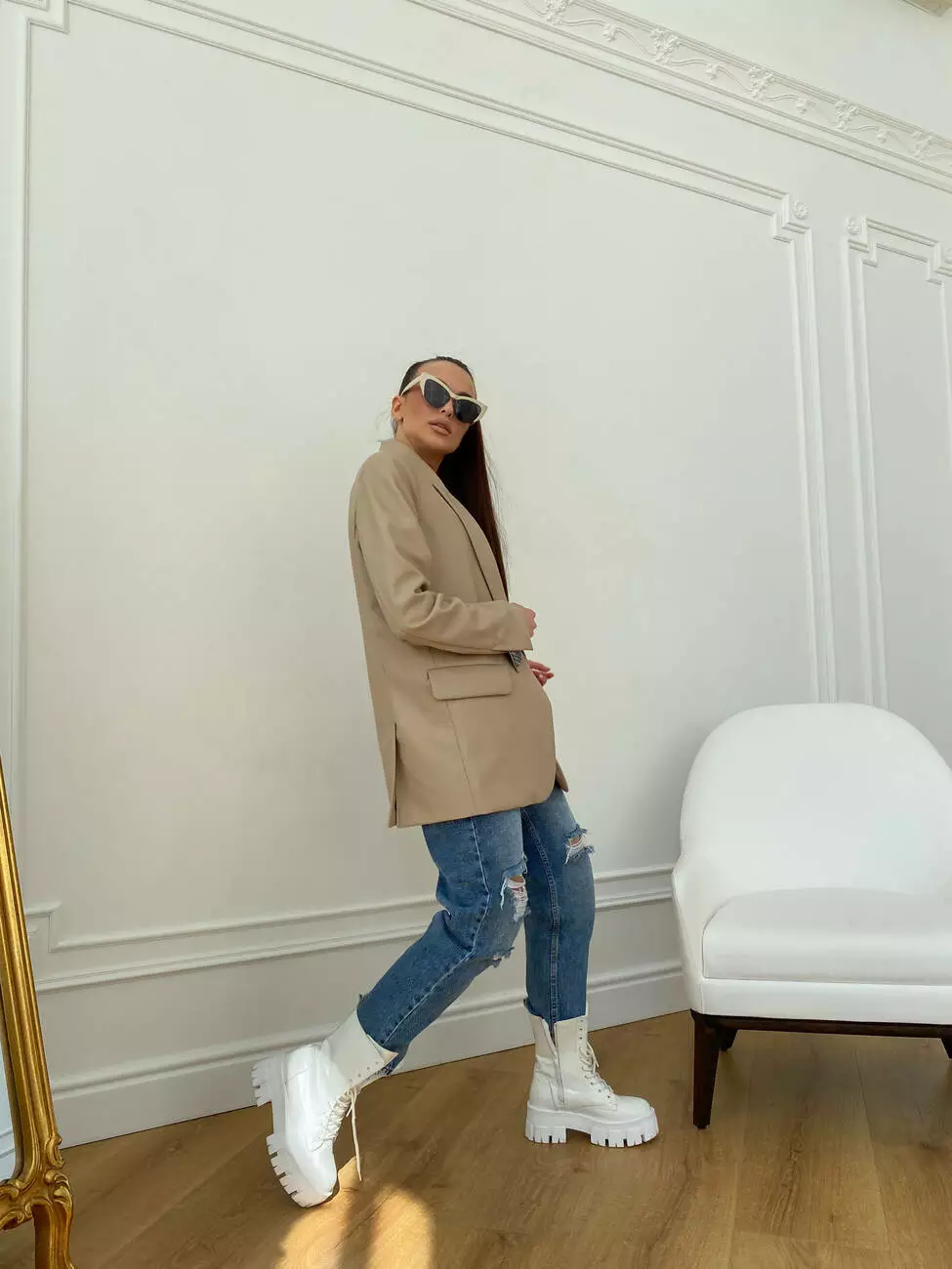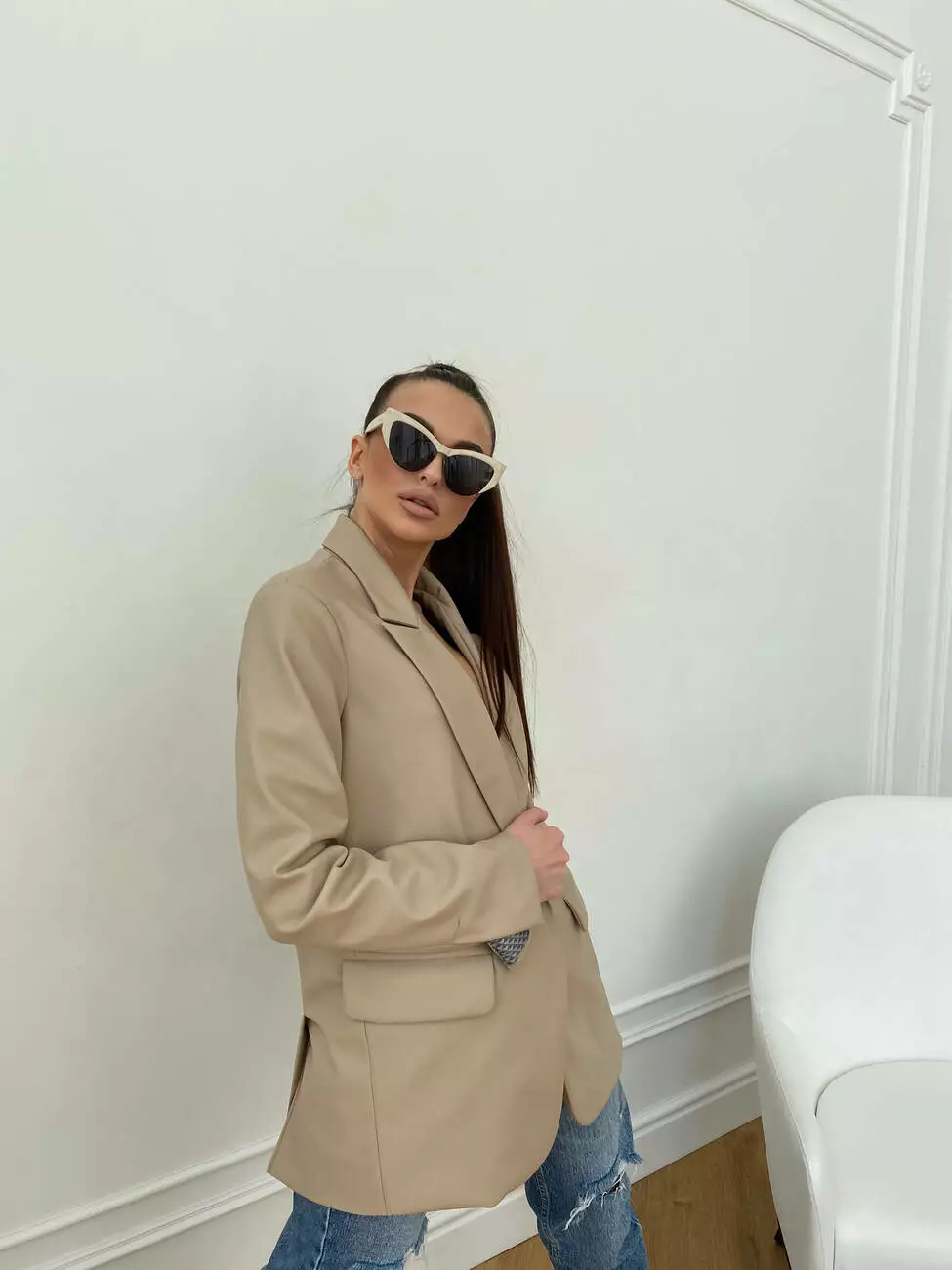 Однотонний жіночий піджак Sakura з екошкіри LUX якості бежевого кольору