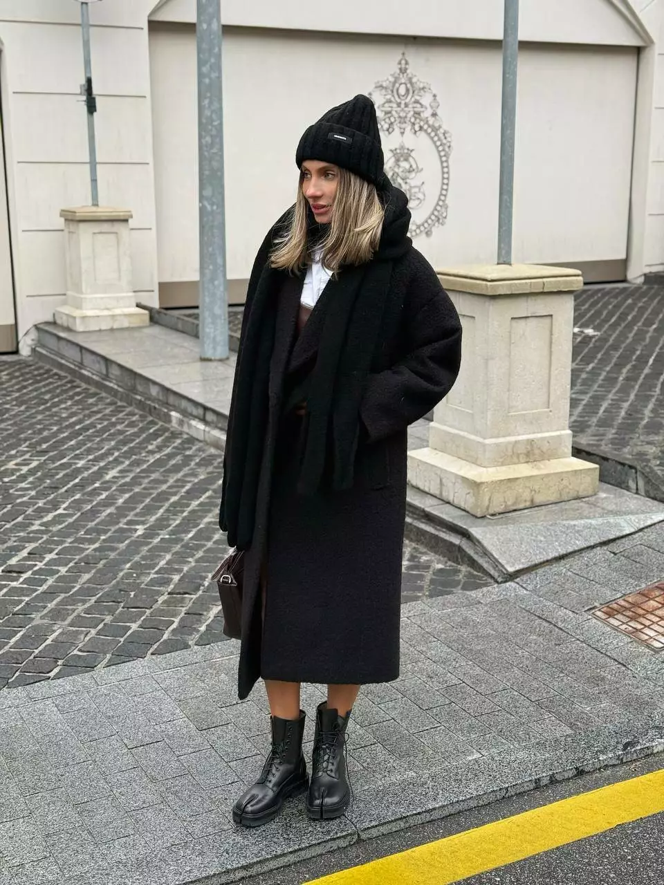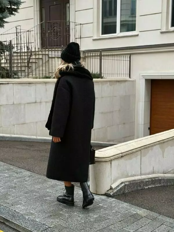 Стильне пальто оверсайз прямого крою зі спущеними плечима