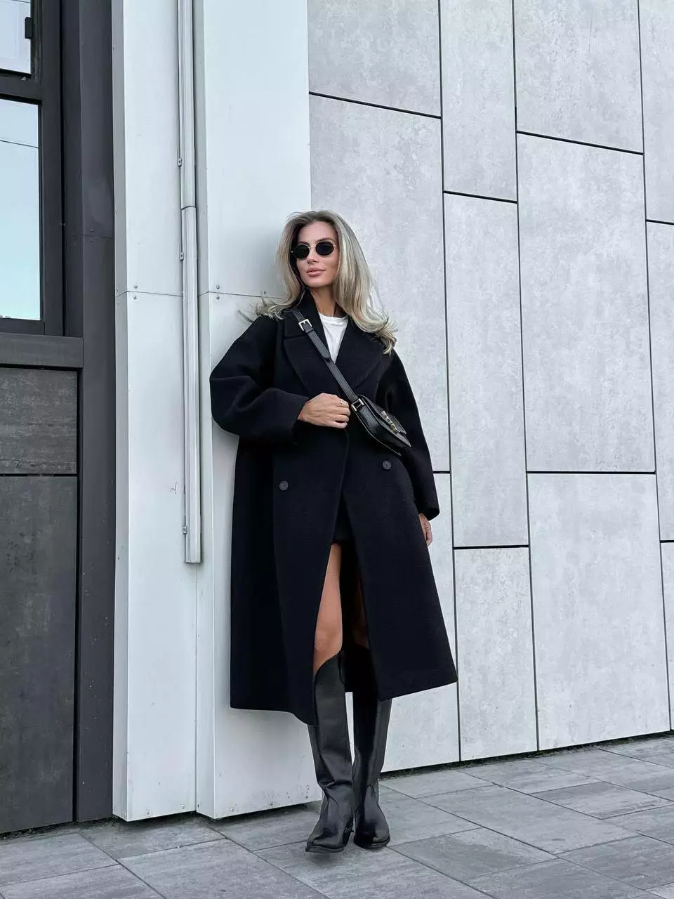 Стильне пальто оверсайз прямого крою зі спущеними плечима