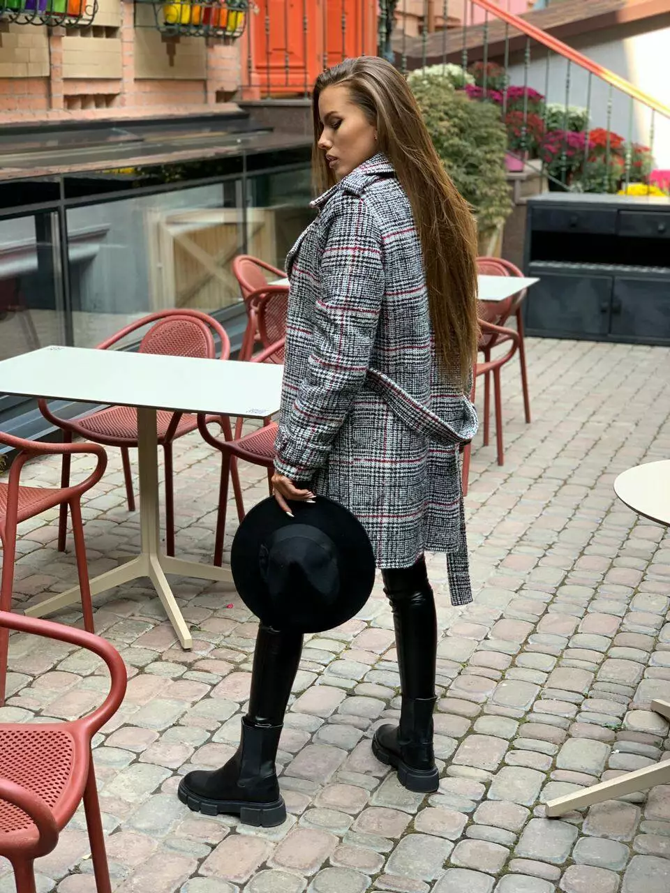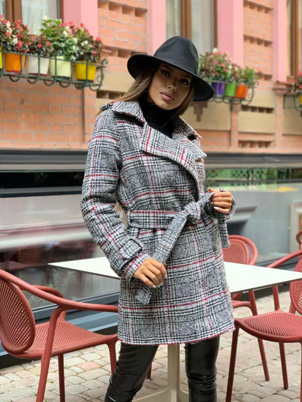Утеплене двобортне пальто на запах Застібається всередині на гудзик, під пояс з 2 кишенями в бічних швах Декоровано патами