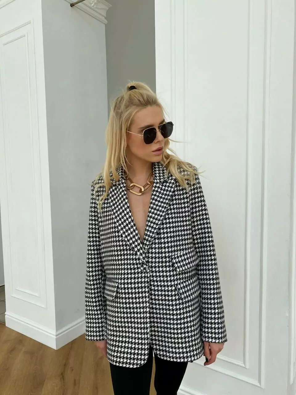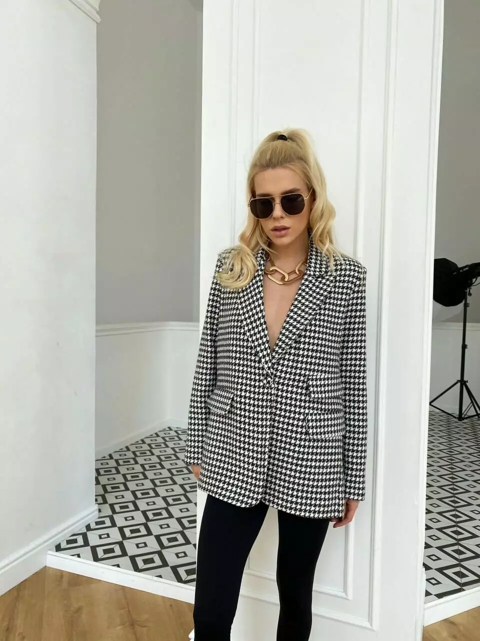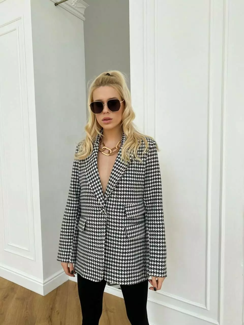 Трендова модель піджака виконана із щільної піджачної тканини в найпопулярніших кольорах принт «лапка» Ідеально підходить для повсякденного носіння та створює милий елегантний образ