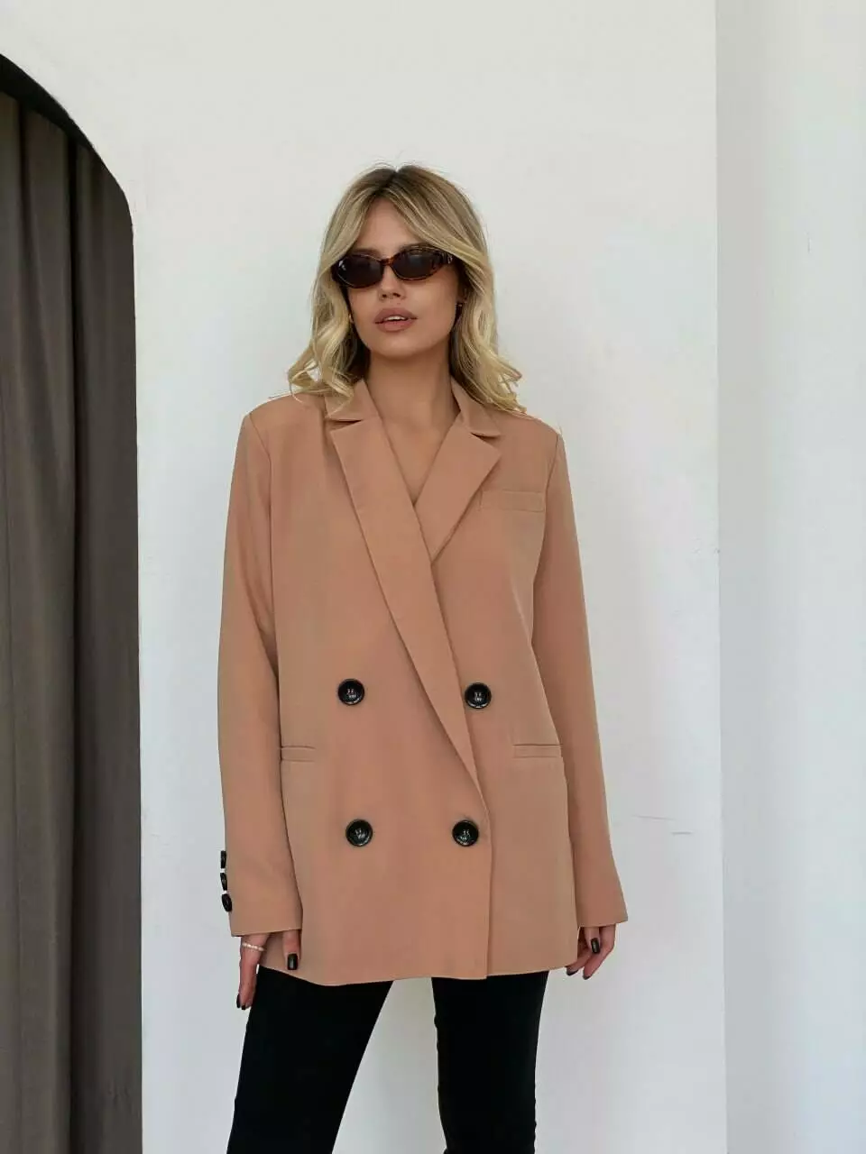 Стильний піджак «з чоловічого плеча», декорований ґудзиками, з 3 кишенями Застібається на 2 гудзики