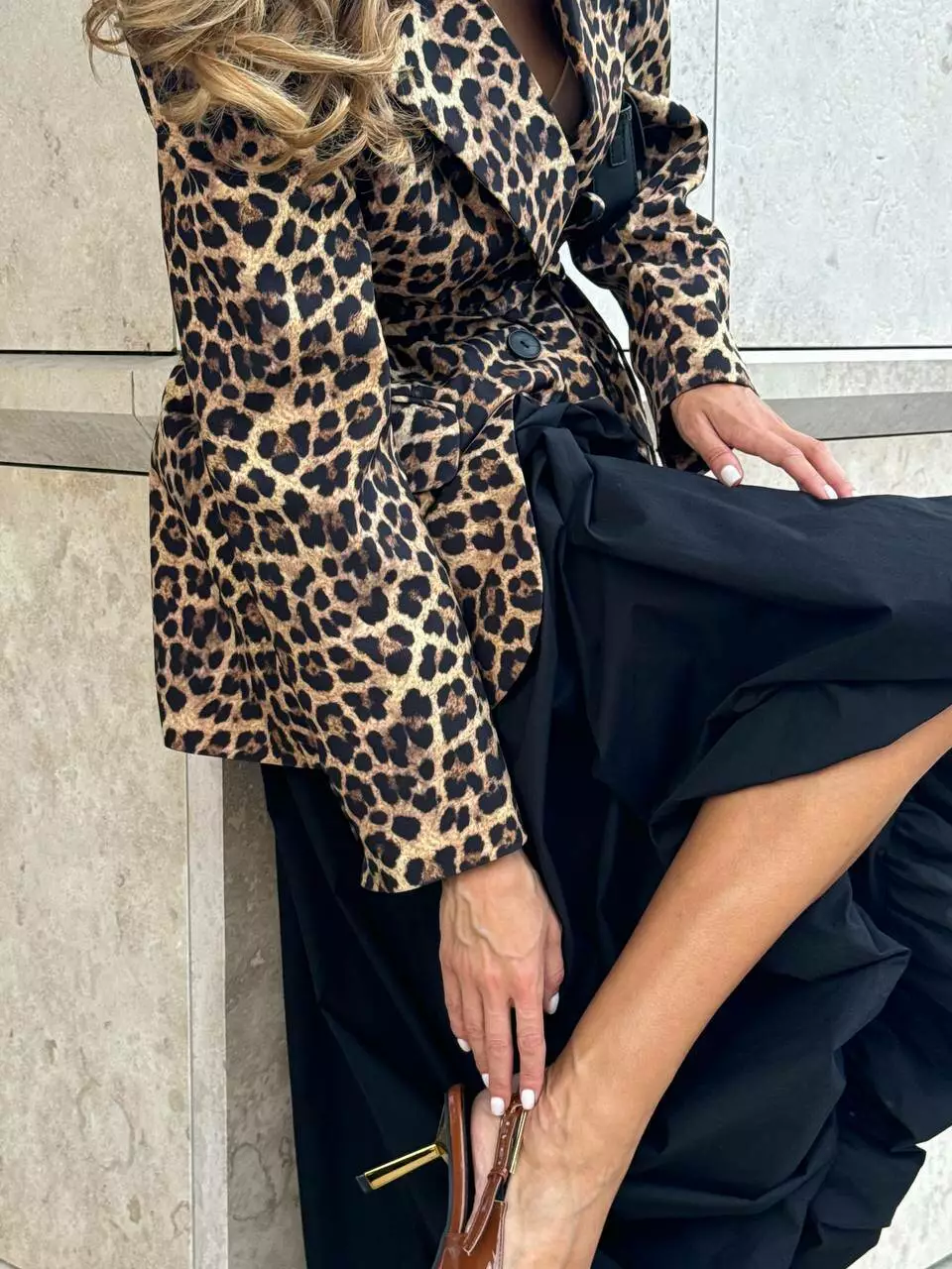 Стильний класичний піджак виконаний із преміальної костюмної тканини. Піджак прямого крою, подовжений, з обʼємними плечима і 2 діючими кармани. В комплекті тонкий пояс -шнурівка.