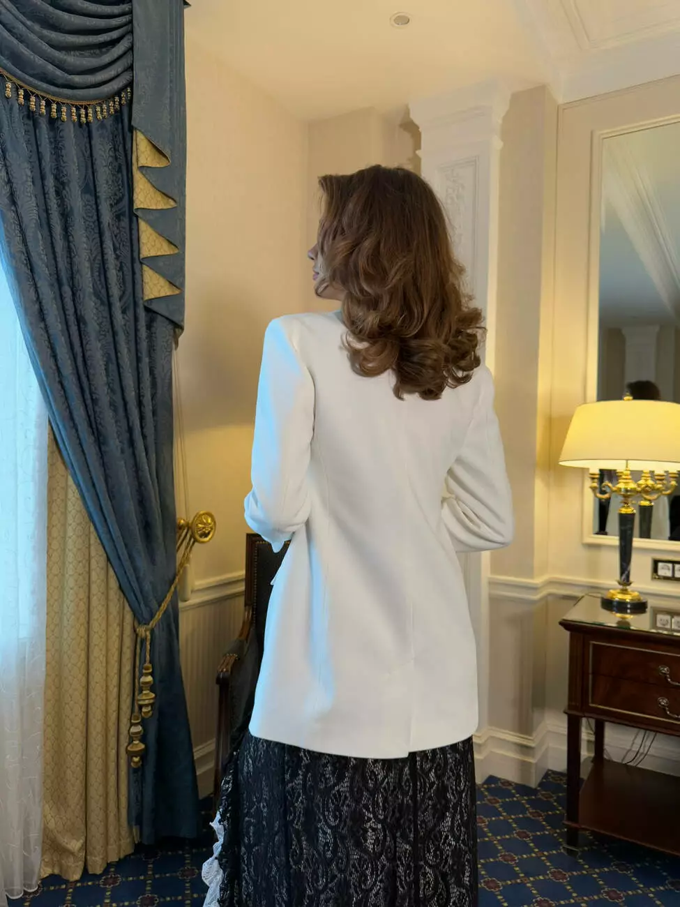 Тренд сезону, приталений піджак класичного крою. Подовжений, зі шліцами на рукавах та по спинці. Виконаний з щільної костюмної тканини, добре тримає форму. Застібається на 2 ґудзики по переду, та має 2 діючі кармани.