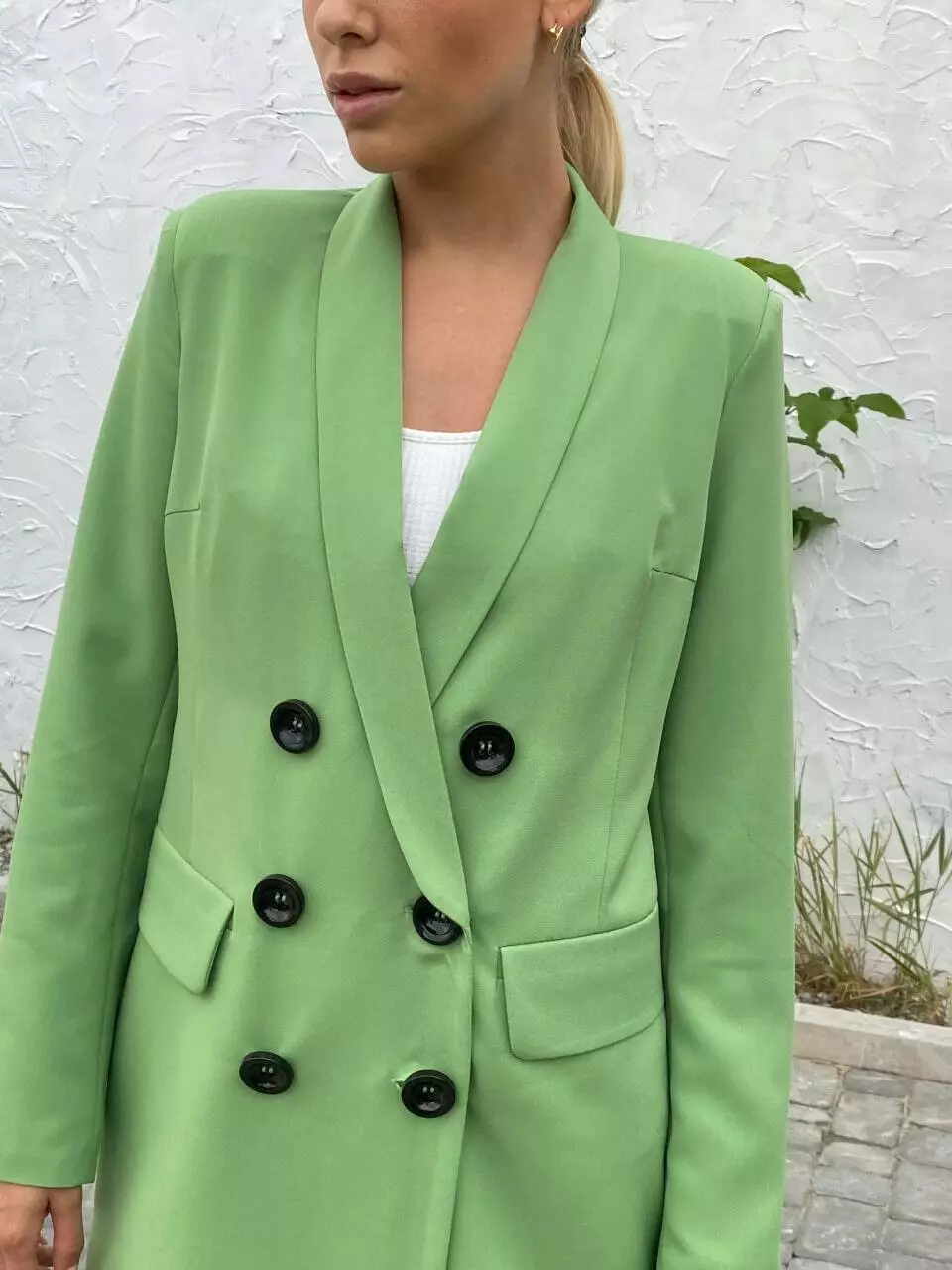 Стильний піджак з карманами, декорований ґудзиками Застібається на 2 пуговиці!