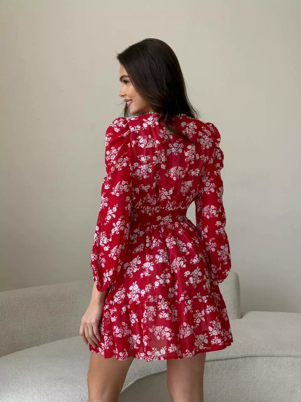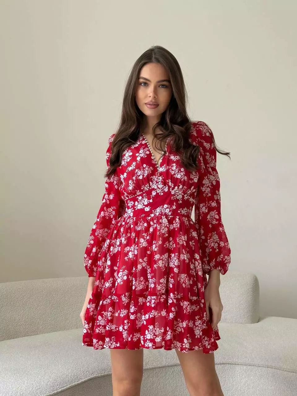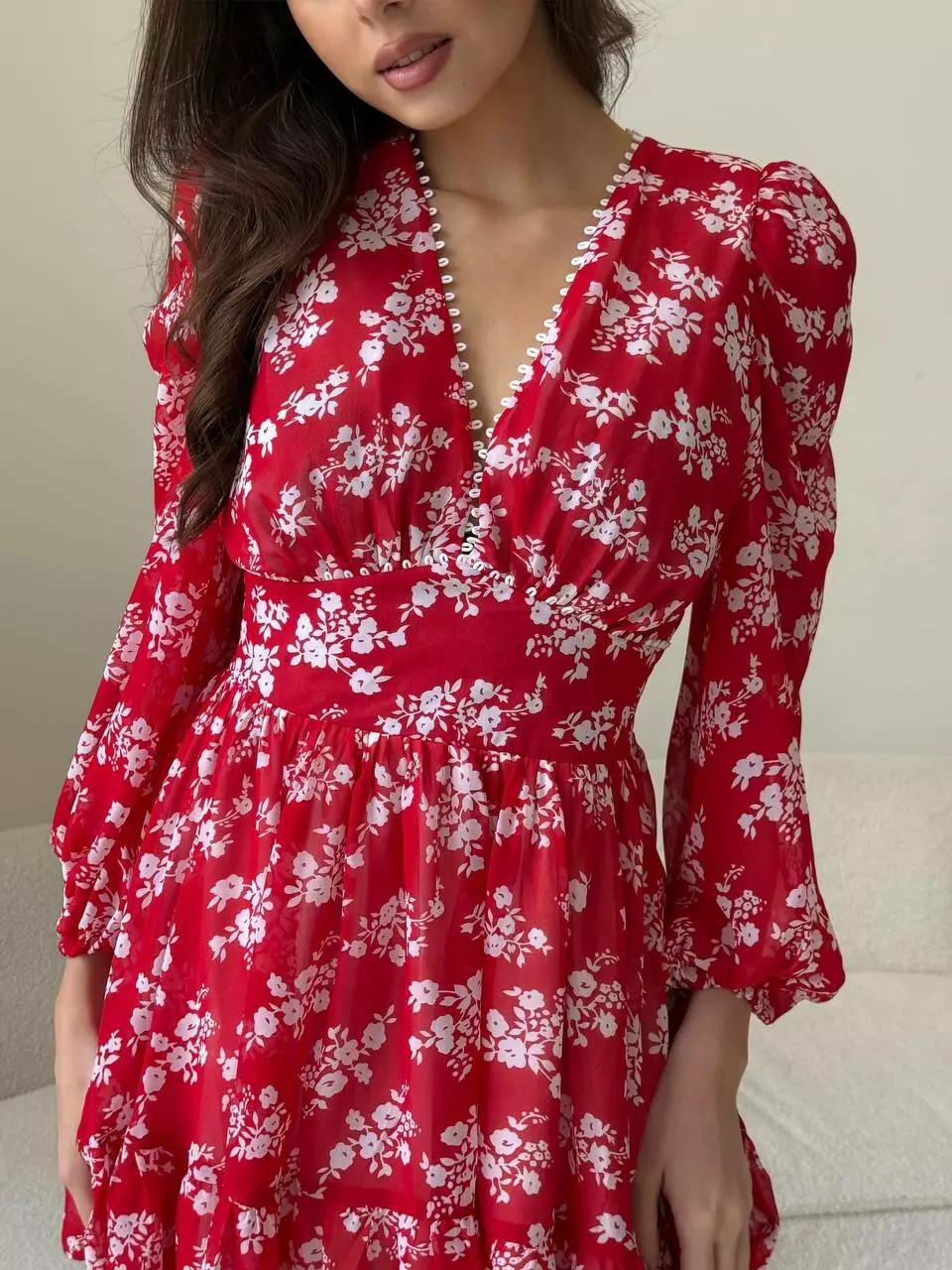 Плаття VIOLA колір квіти білі на червоному
