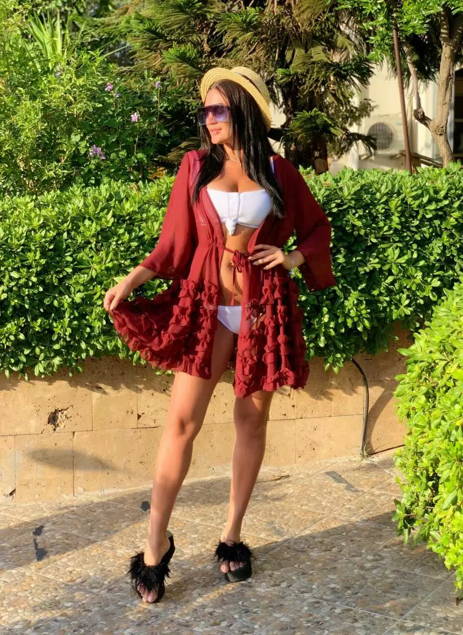 Шифоновий пляжний халат з оборками по юбці, рукав 3-4 флангом, таліч на кулісці
