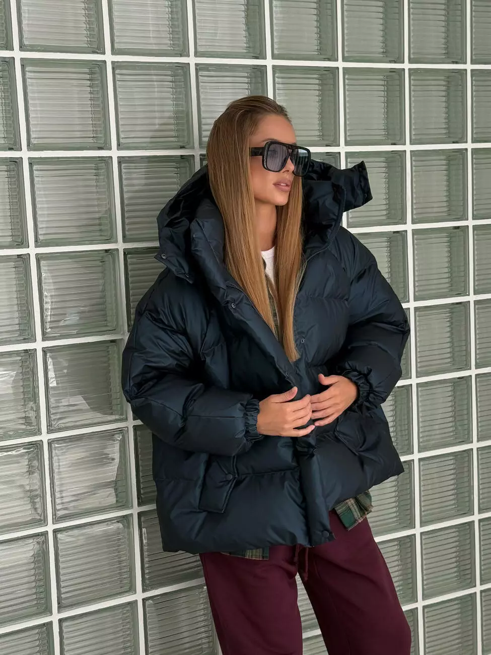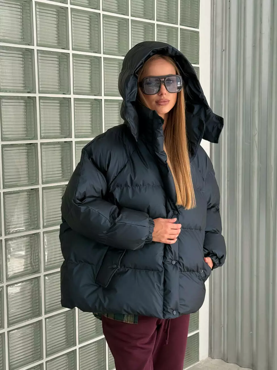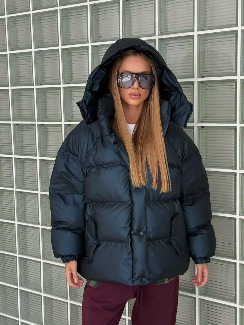 Зимовий пуховик, виконаний з плащівки на мембрані, що є непродувною і водонепроникаючою.
