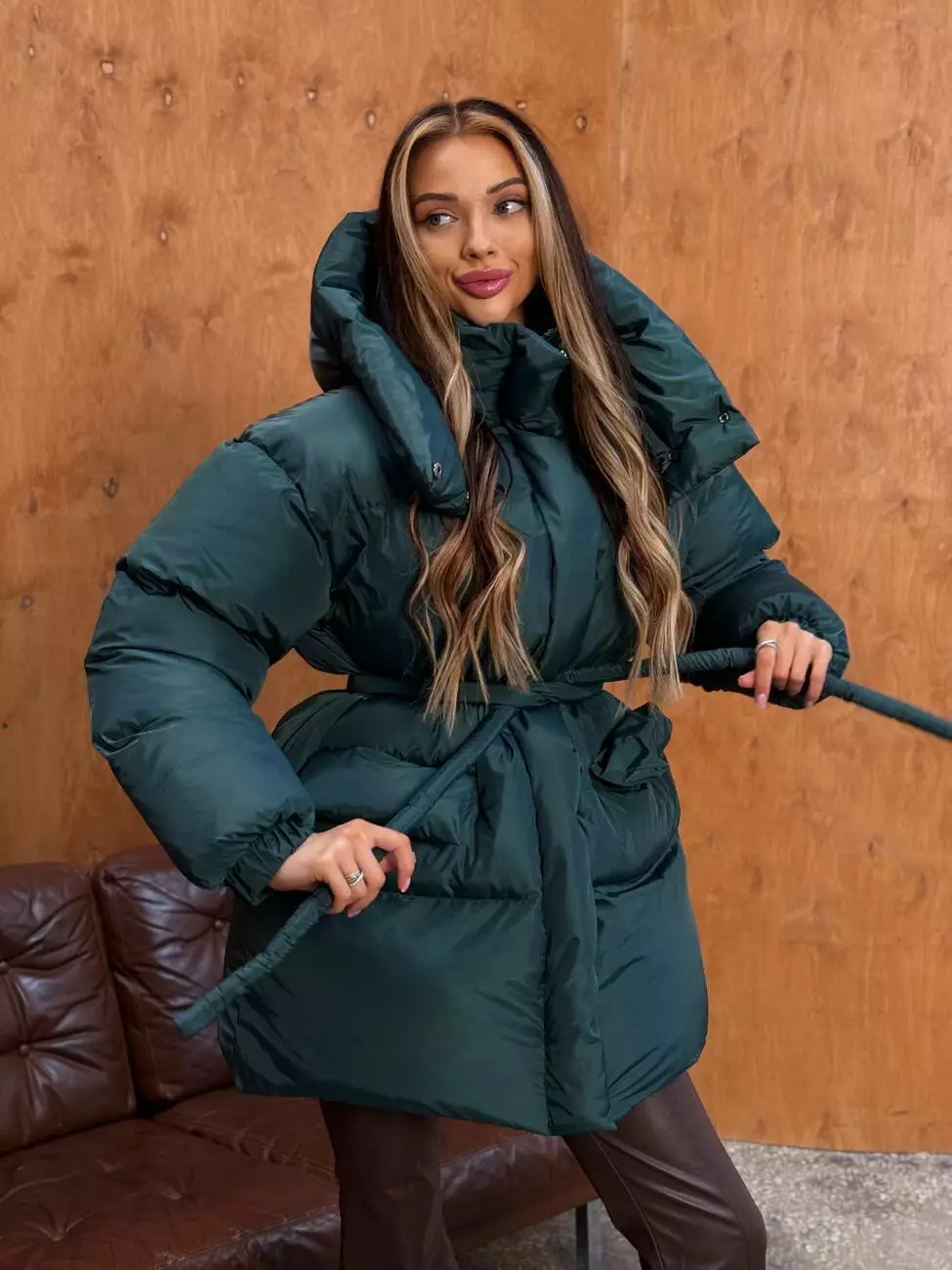 Зимовий ПУФЕР виконаний з плащівки , що є непродувною і водонепроникаючою, прямого крою В комплекті йде пояс ,достатньо обʼємна