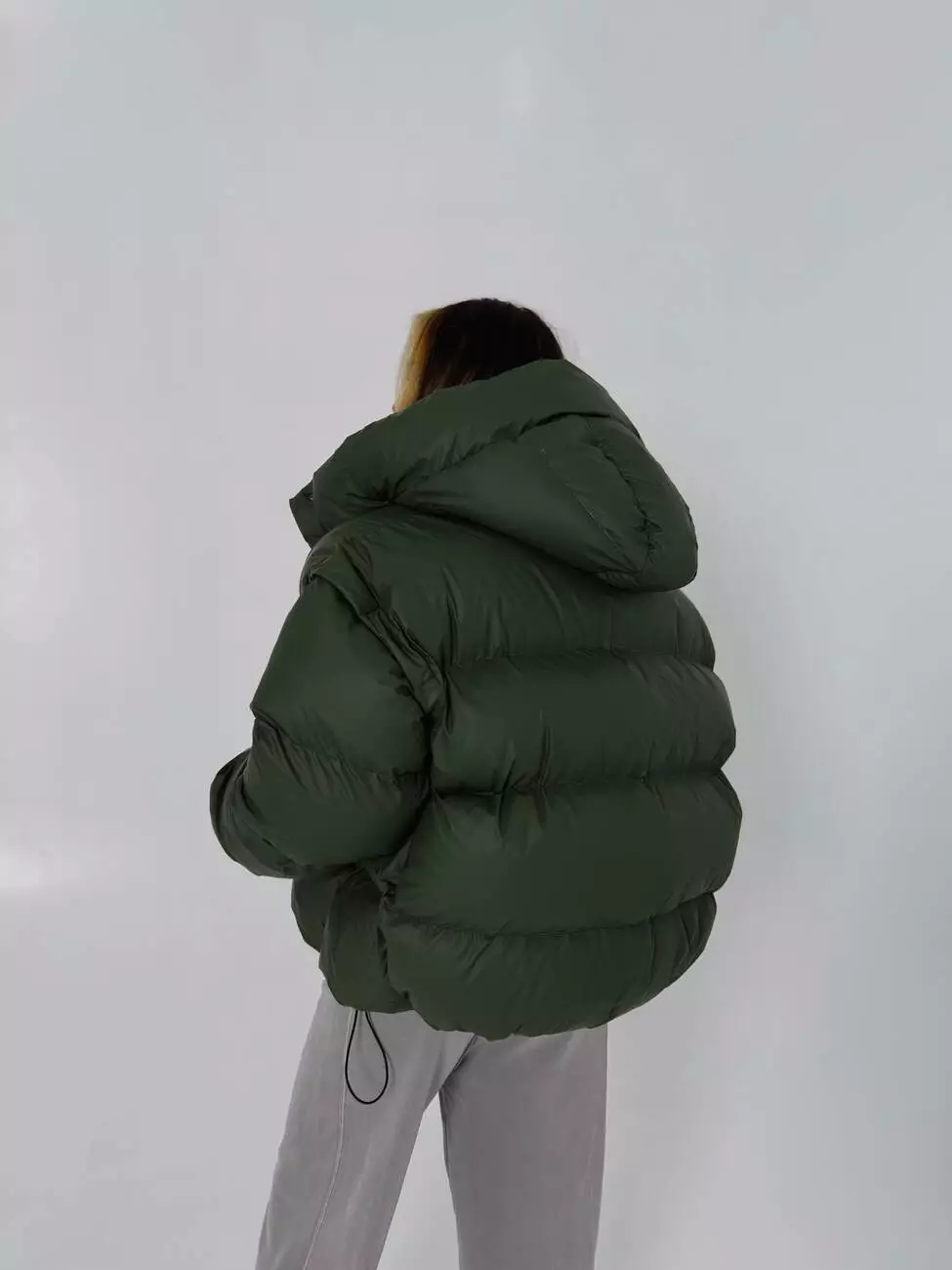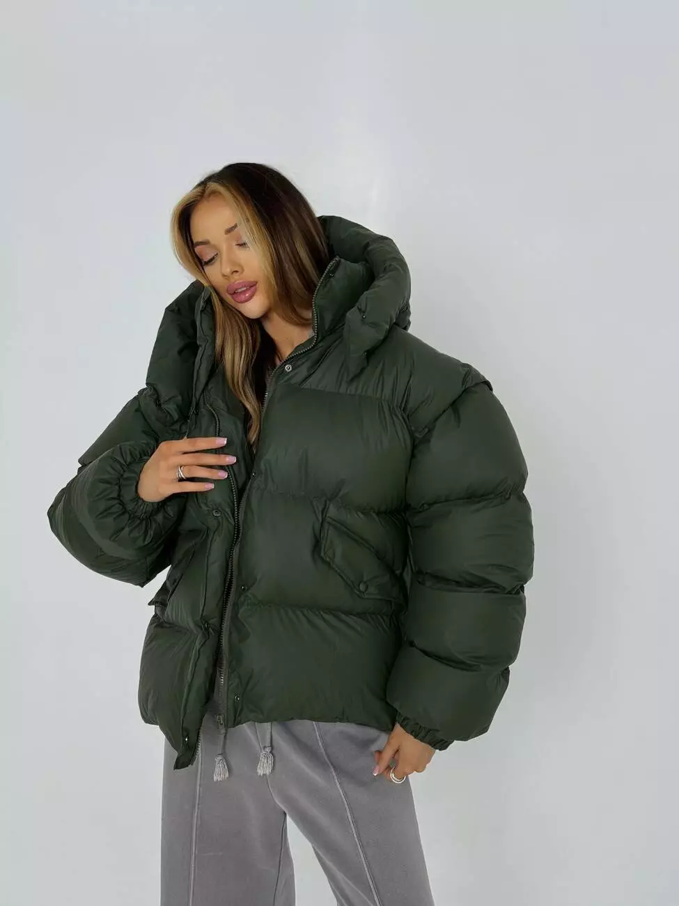 Зимовий ПУФЕР трансформер, виконаний з плащівки на мембрані, що є непродувною і водонепроникаючою.