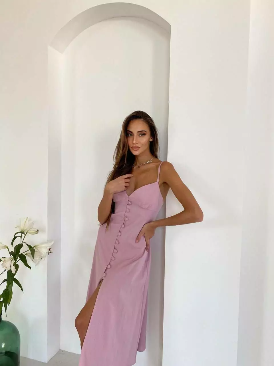 Літній легкий сарафан, виконаний у трендовому стилі, ліф зі складанням, спинка оголена, регульовані бретелі зав'язкою на спині Тканина: Льон, ШТАПЕЛЬ