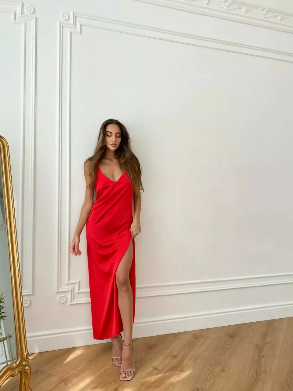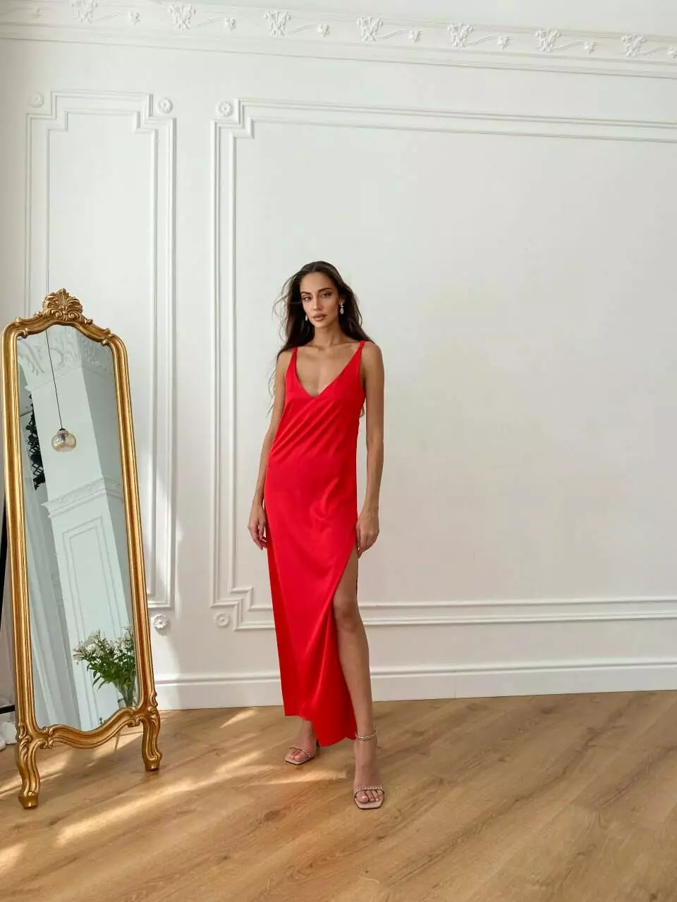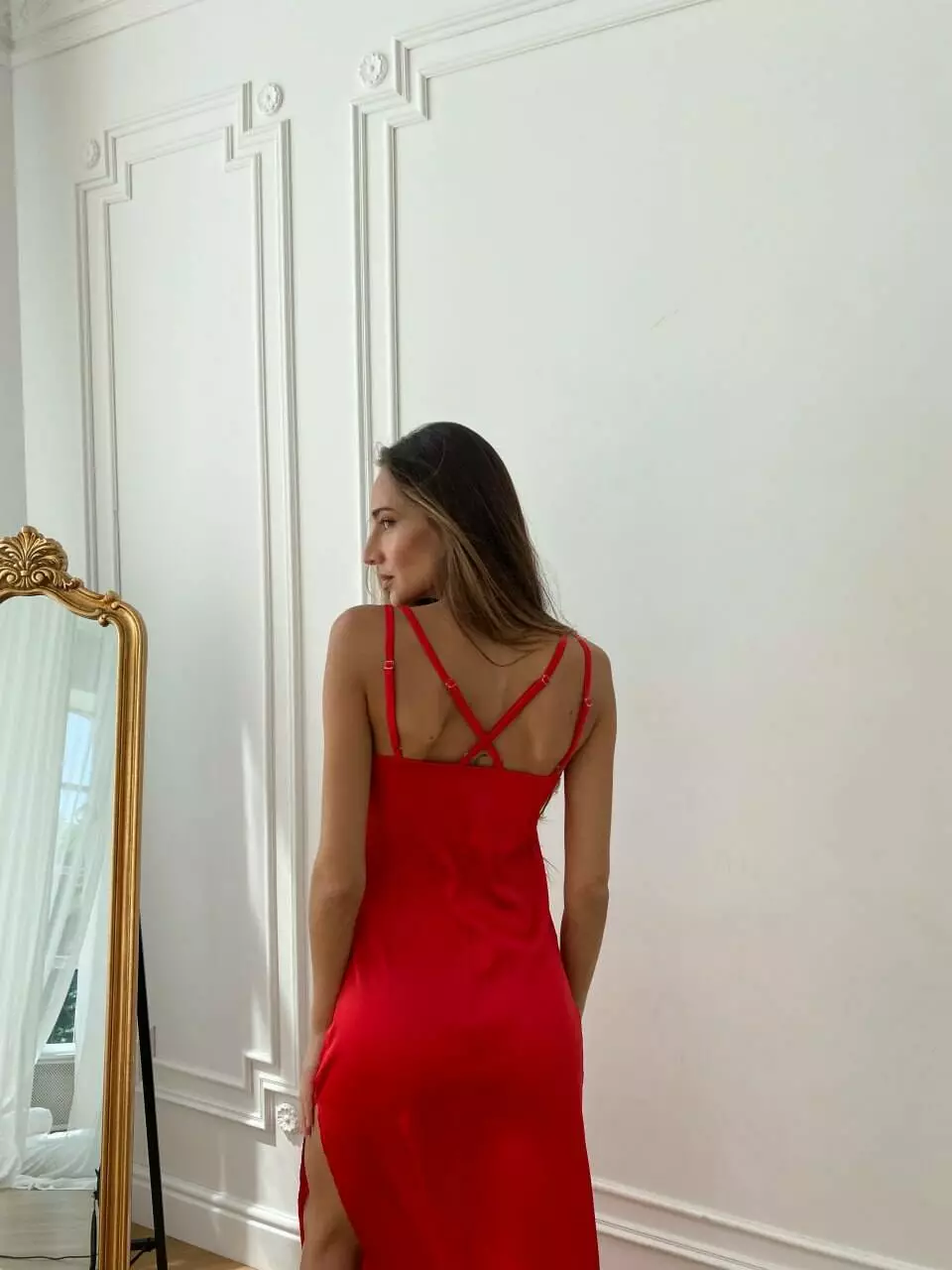 Модель поєднує ніжність шовку та вишуканий V-подібний виріз, та регульовані бретелі підкреслюють жіночність