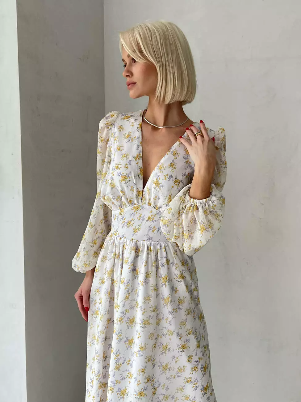 Модель виготовлена з тактильного приємного шифону з квітковим принтом.