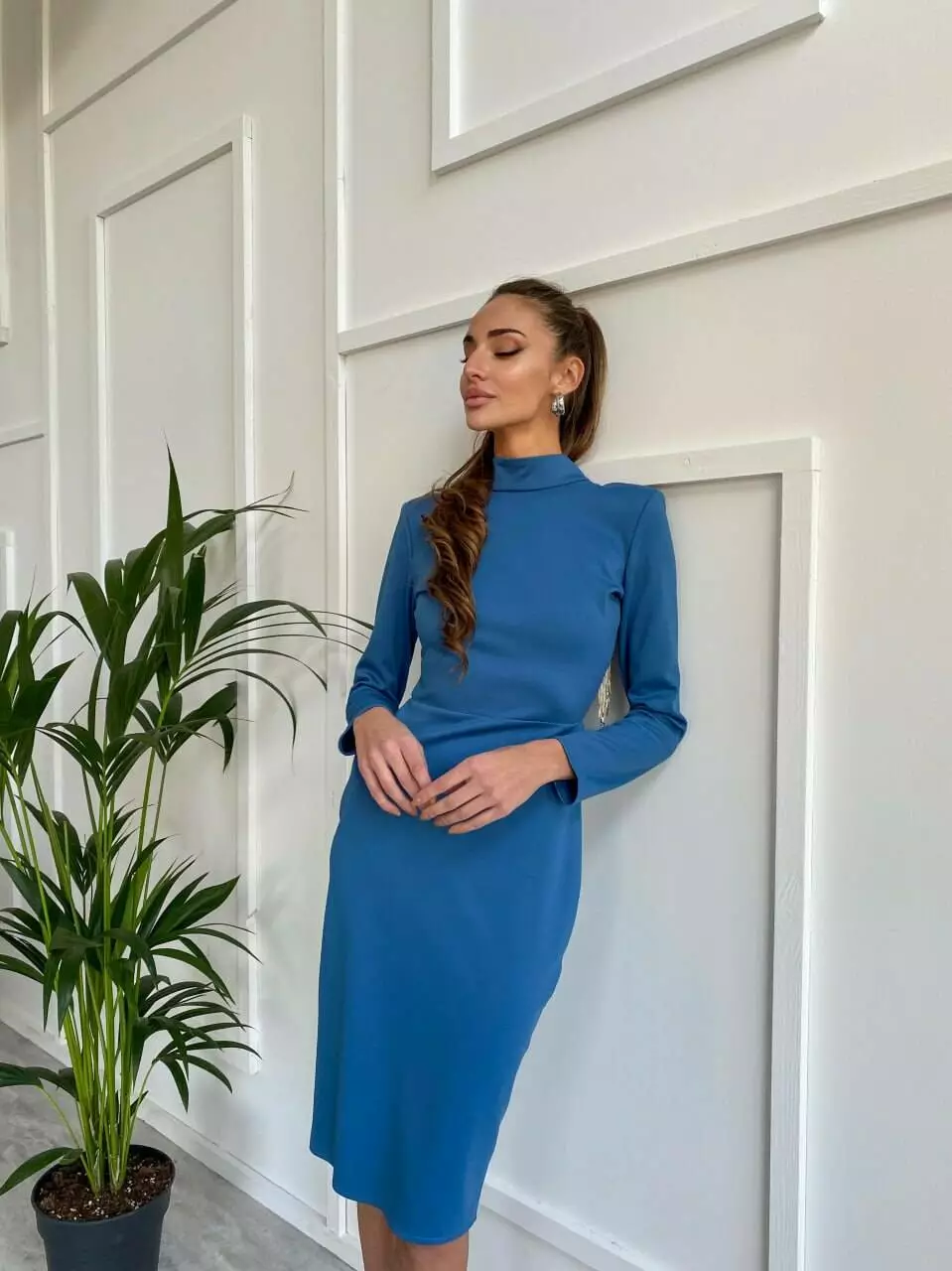 Жіноча сукня гольф міді з щільного трикотажу lux, з об'ємними підплічниками та застібається сукня на ґудзики на горлі ззаду і потайною блискавкою