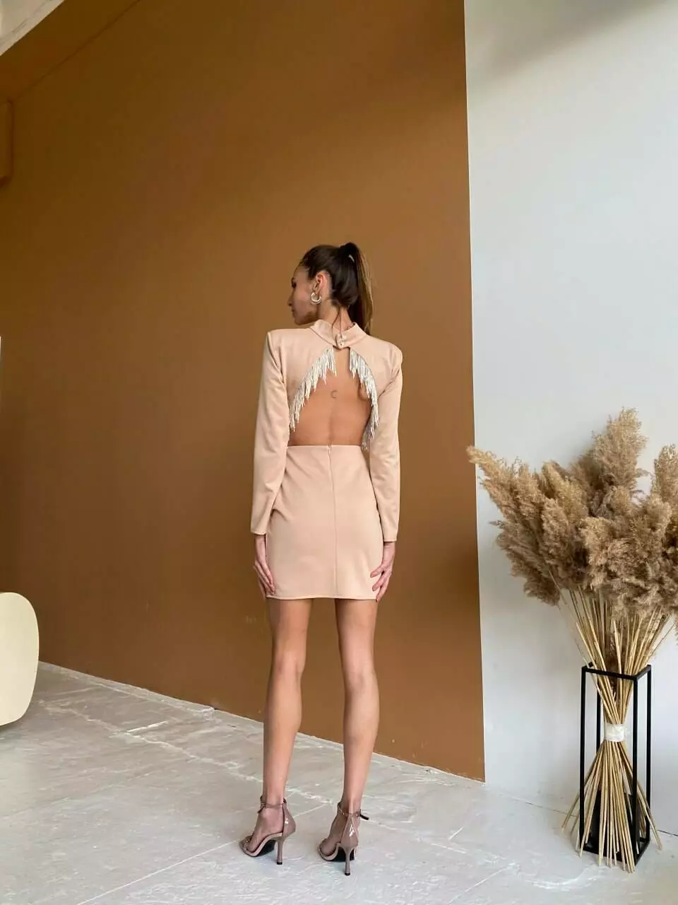 Розкішна люксова сукня з відкритою спинкою, декорована бахромою з бісеру учне прання