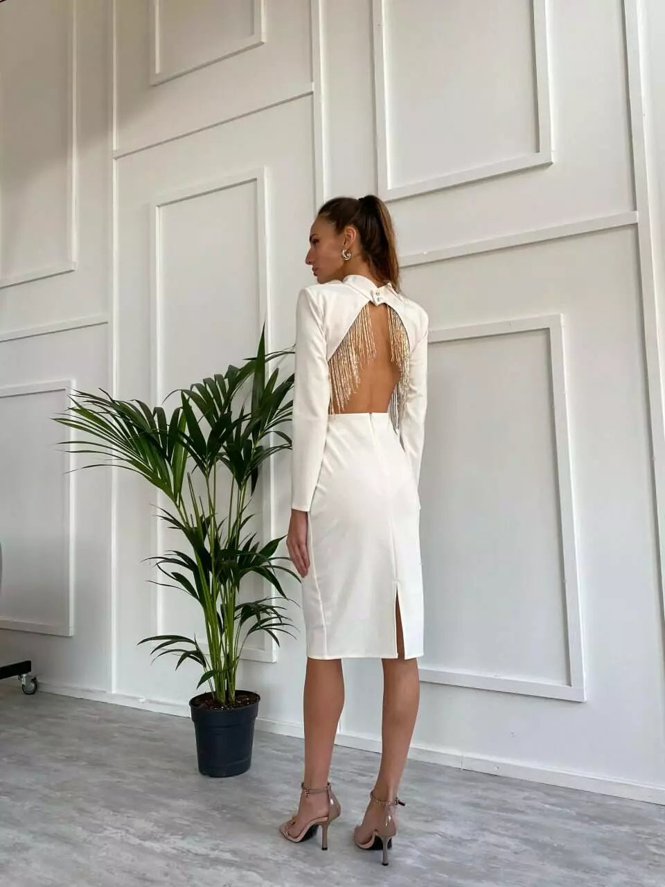 Жіноча сукня гольф міді з щільного трикотажу lux, з об'ємними підплічниками та застібається сукня на ґудзики на горлі ззаду і потайною блискавкою